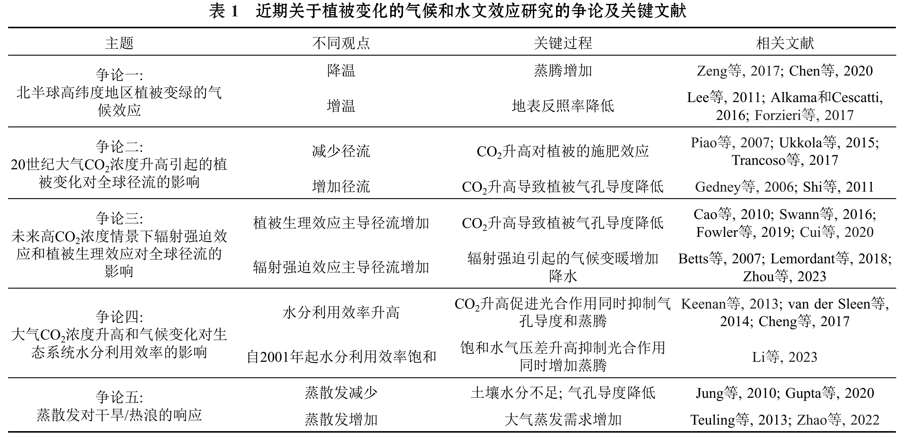 越来越多的研究致力于探究陆地生态系统变化对气候和水循环的影响。然而,令人意外的是,这些研究在“植被变化如何影响气候和水循环”这一关键问题上得出的结论却大相径庭(表1)。蒸散发中的蒸腾组分是植被变化影响陆地水循环和气候的主要生物物理过程,但与蒸散发其他组分(土壤蒸发和冠层截留蒸发)对气候和植被变化的响应规律截然不同。常用测量方法通常适用于生态系统或景观尺度,因此直接测量蒸散发总量比单独测定植被蒸腾更为容易。目前,已有蒸散发观测数据并未能提升蒸腾的模拟精度。