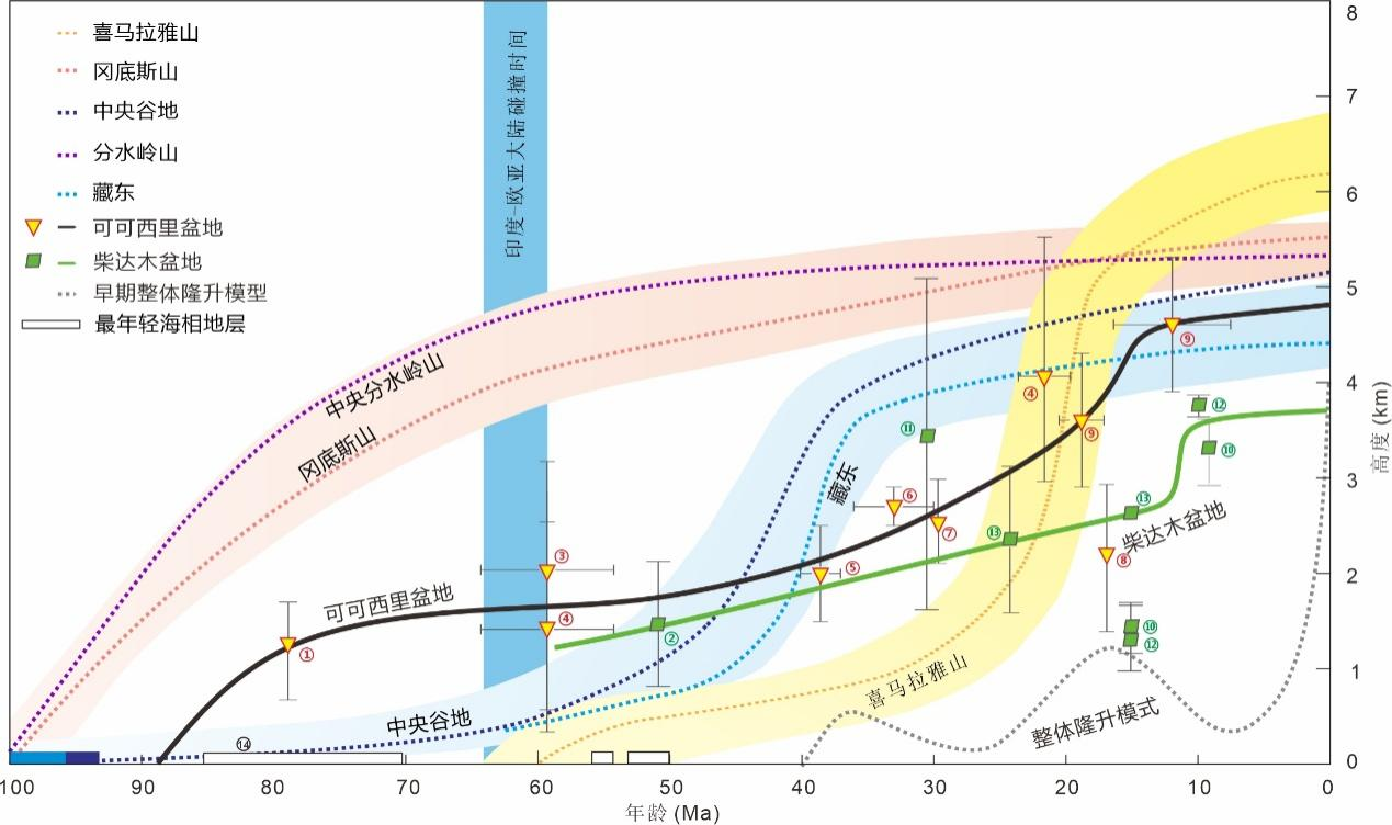 图2 青藏高原从造山带转变为统一高原的隆升历史