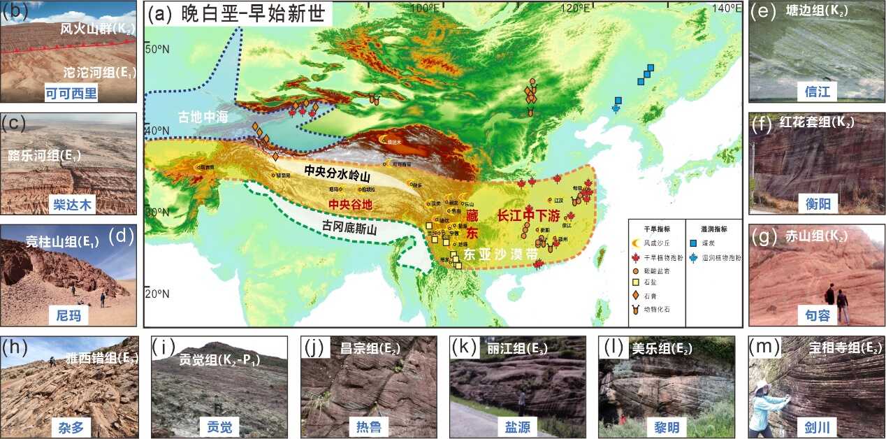 图4 晚白垩世至早始新世青藏高原及邻区风成沙丘和干旱气候指标分布图