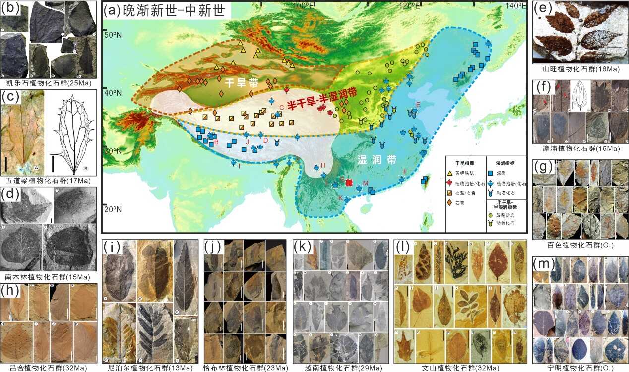 图6 晚渐新世-中新世期间青藏高原及邻区典型气候和植被指标分布图