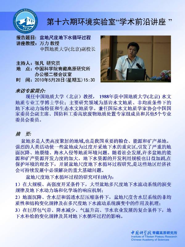 第十六期环境实验室“学术前沿讲座”