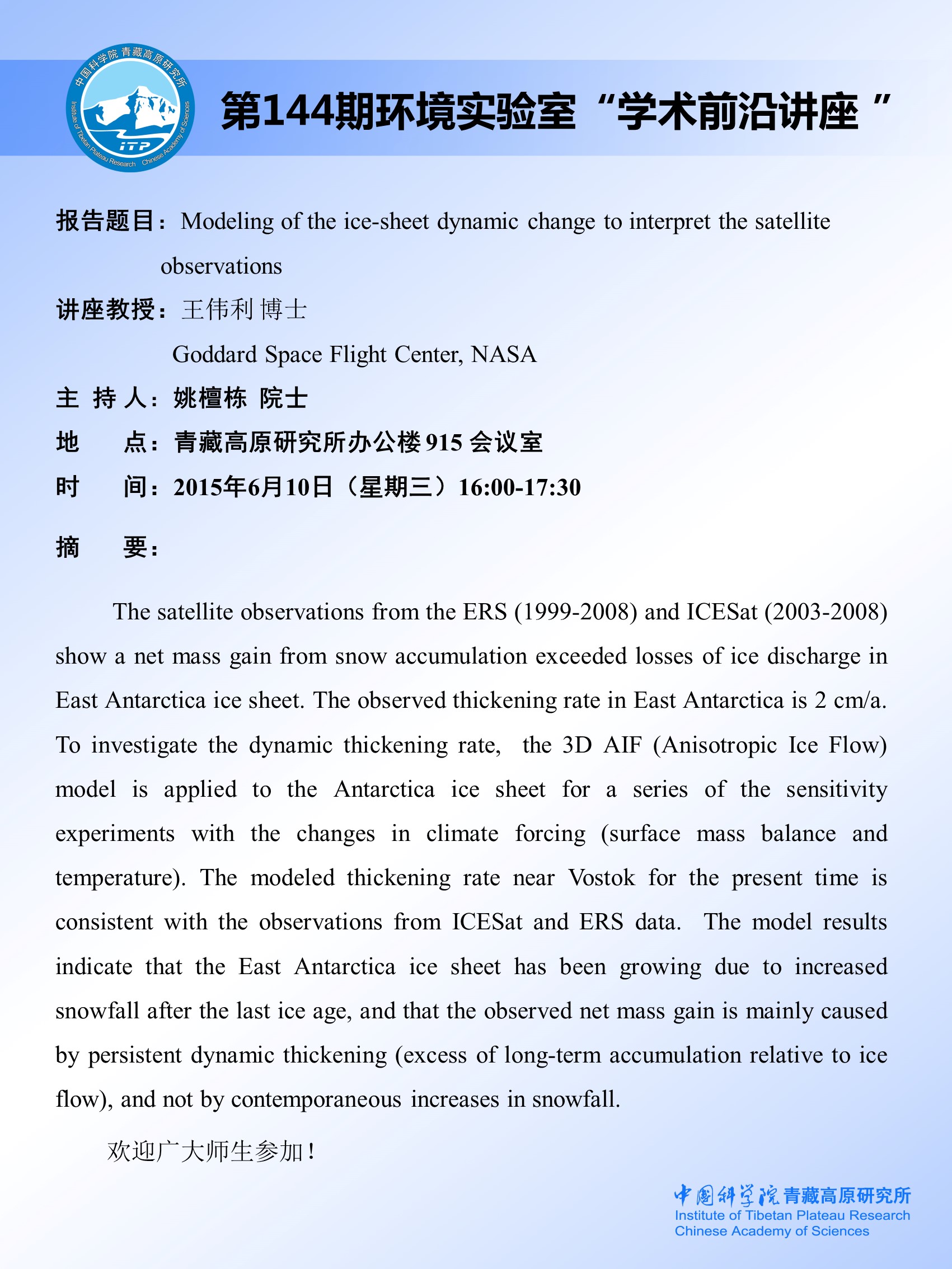 第144期环境实验室“学术前沿讲座 ”通知