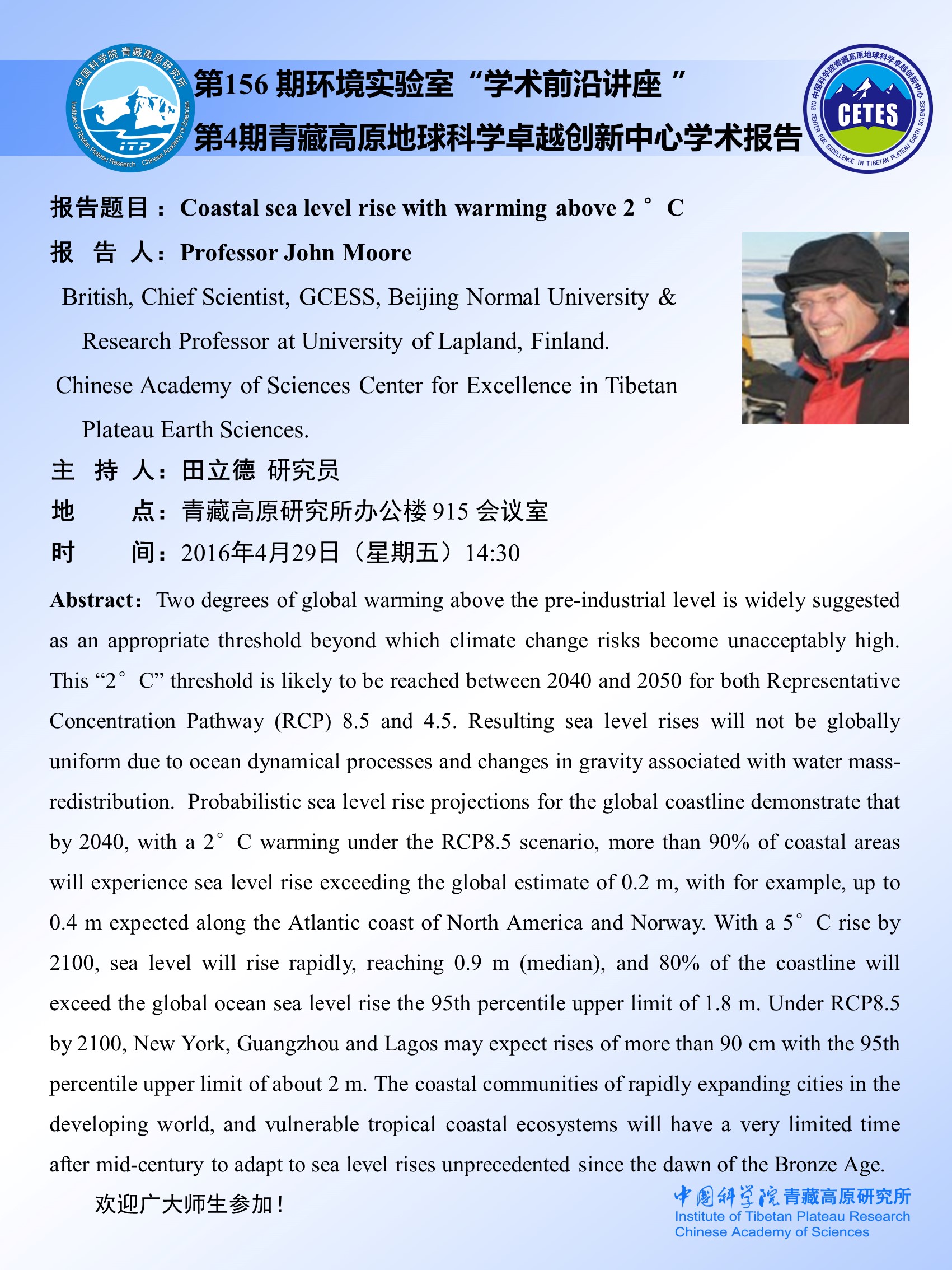 第156期环境实验室“学术前沿讲座”和第4期青藏高原地球科学卓越创新中心学术报告通知