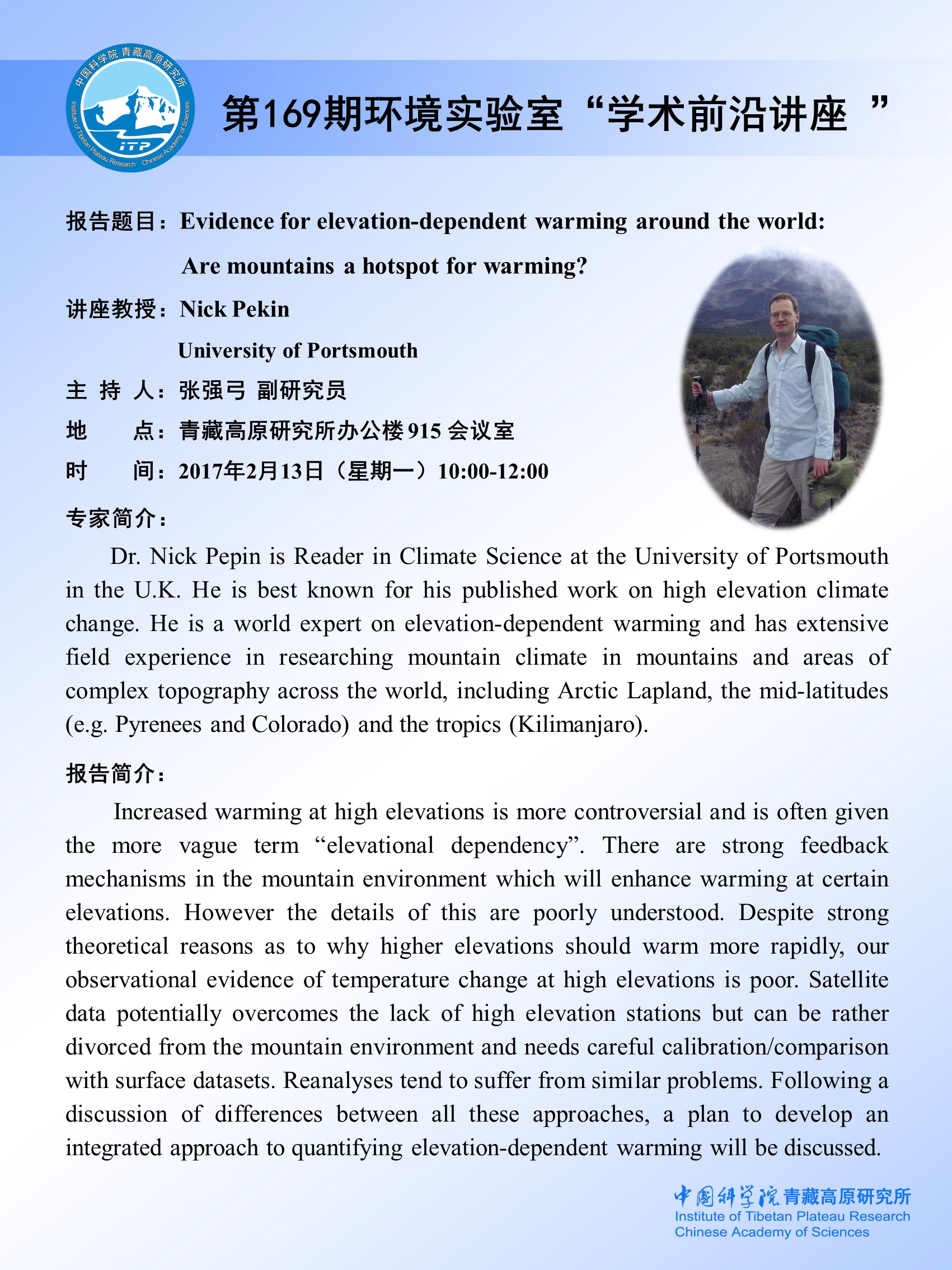 第169期环境实验室“学术前沿讲座”
