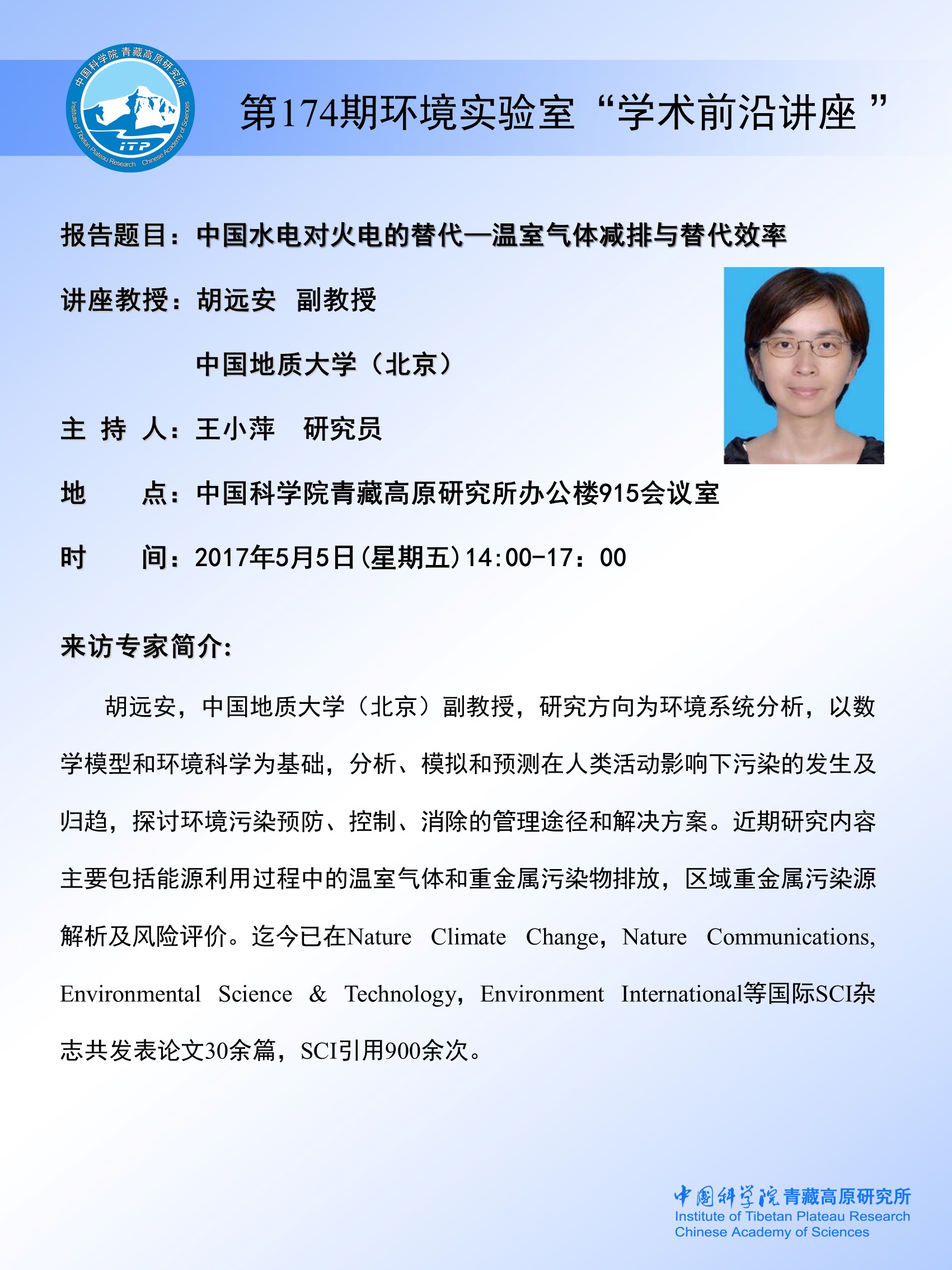 第174期环境实验室“学术前沿讲座”