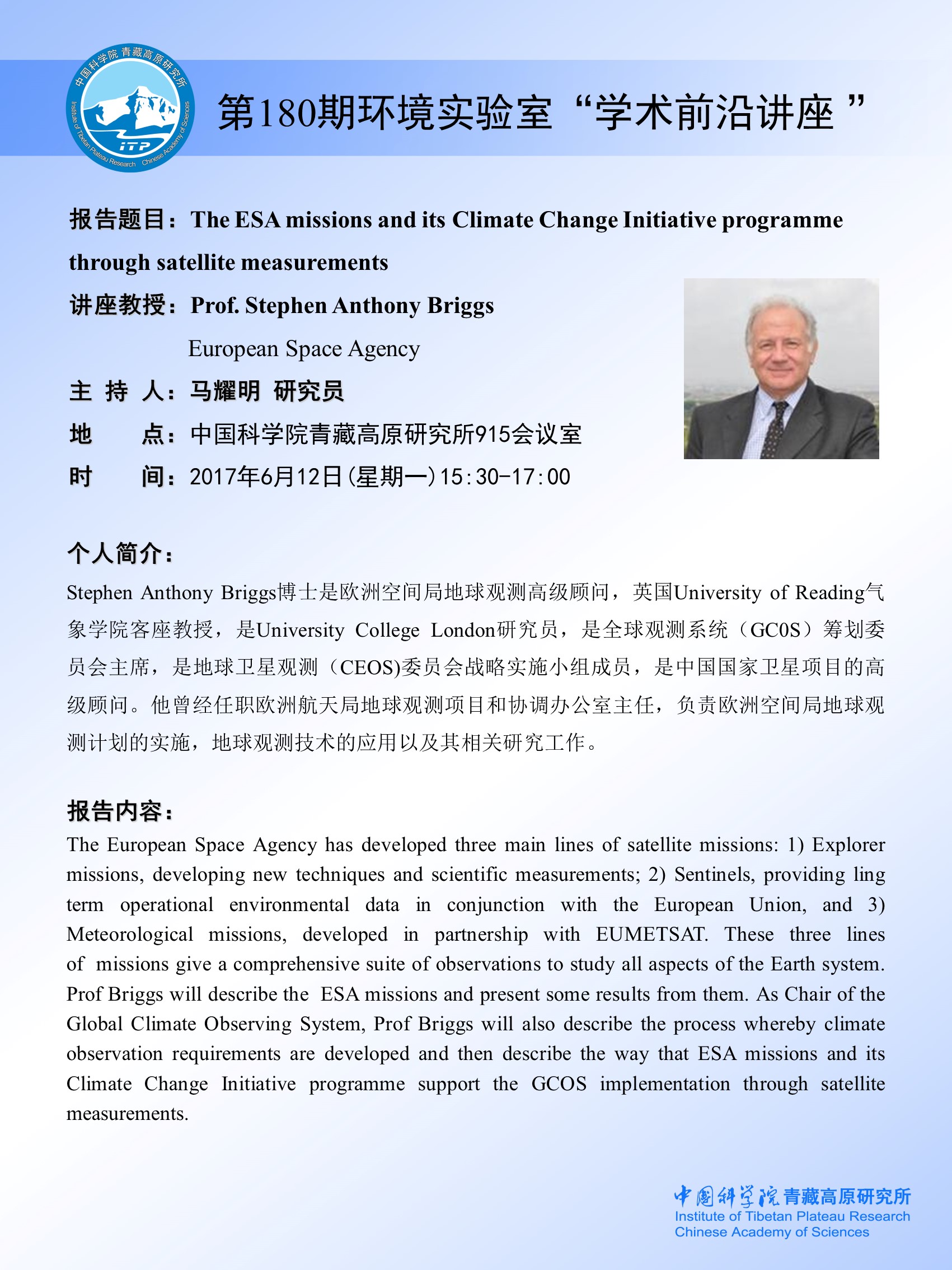 第180期环境实验室“学术前沿讲座”通知