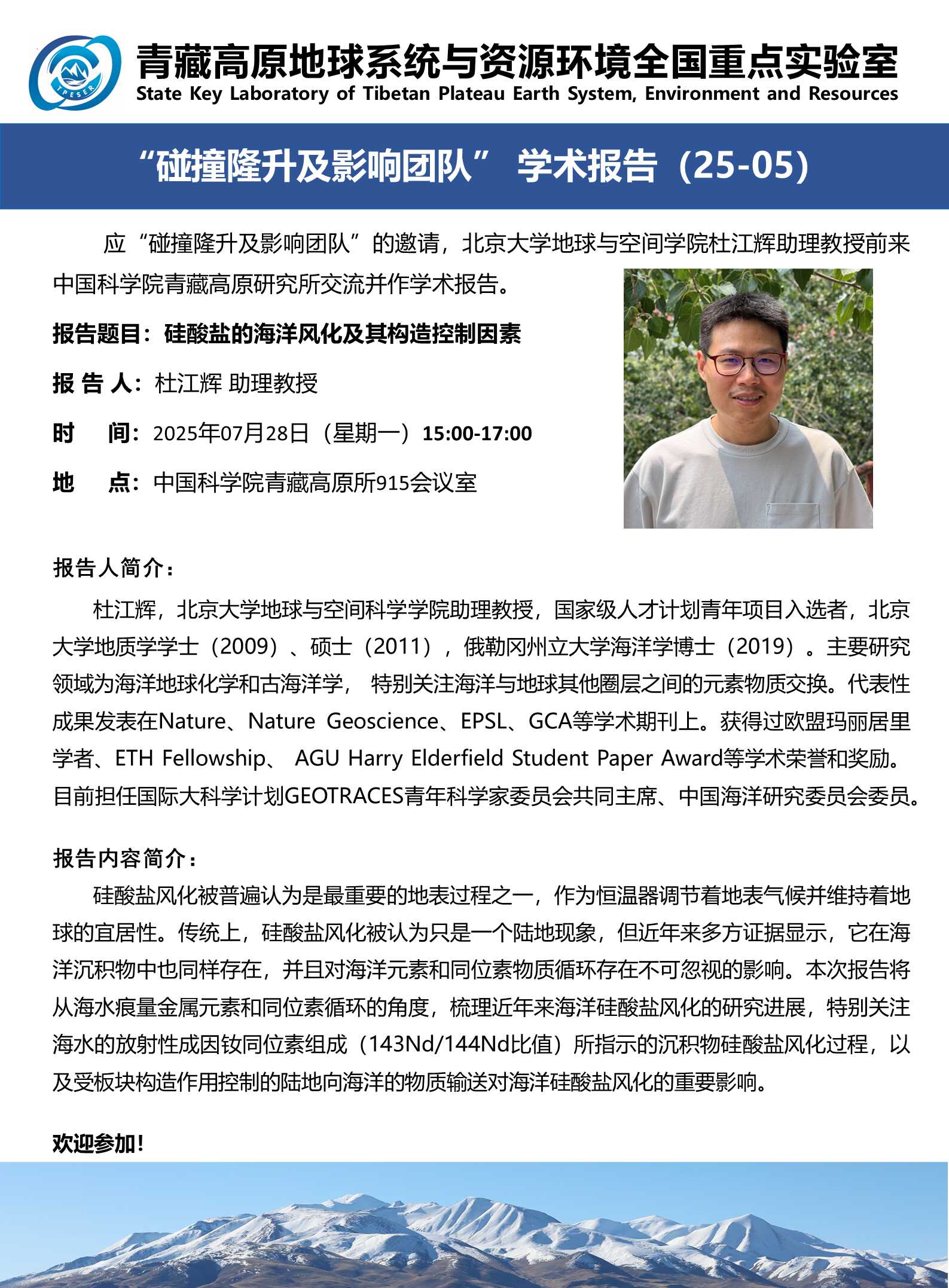 报告题目:硅酸盐的海洋风化及其构造控制因素