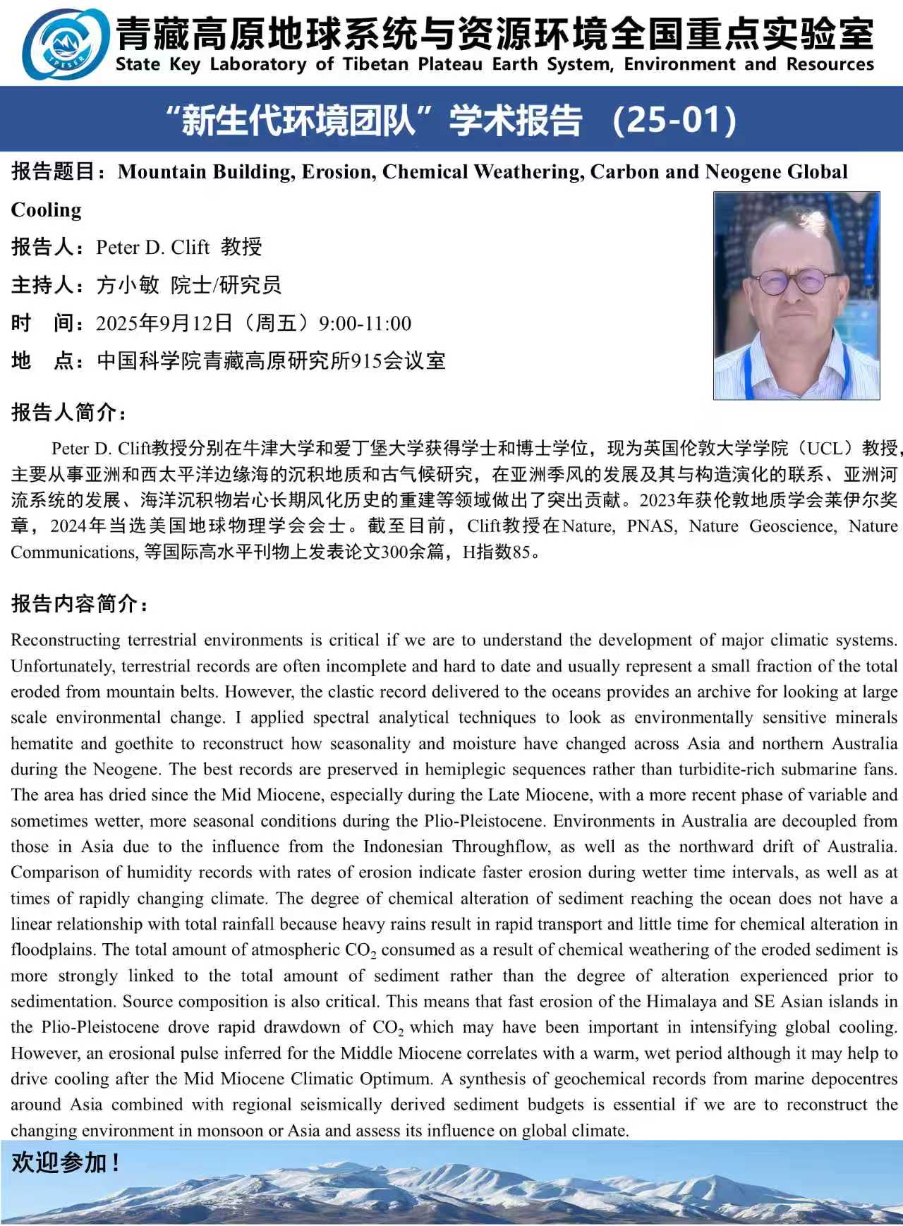 报告题目:Mountain Building, Erosion, Chemical Weathering, Carbon and Neogene Global Cooling
