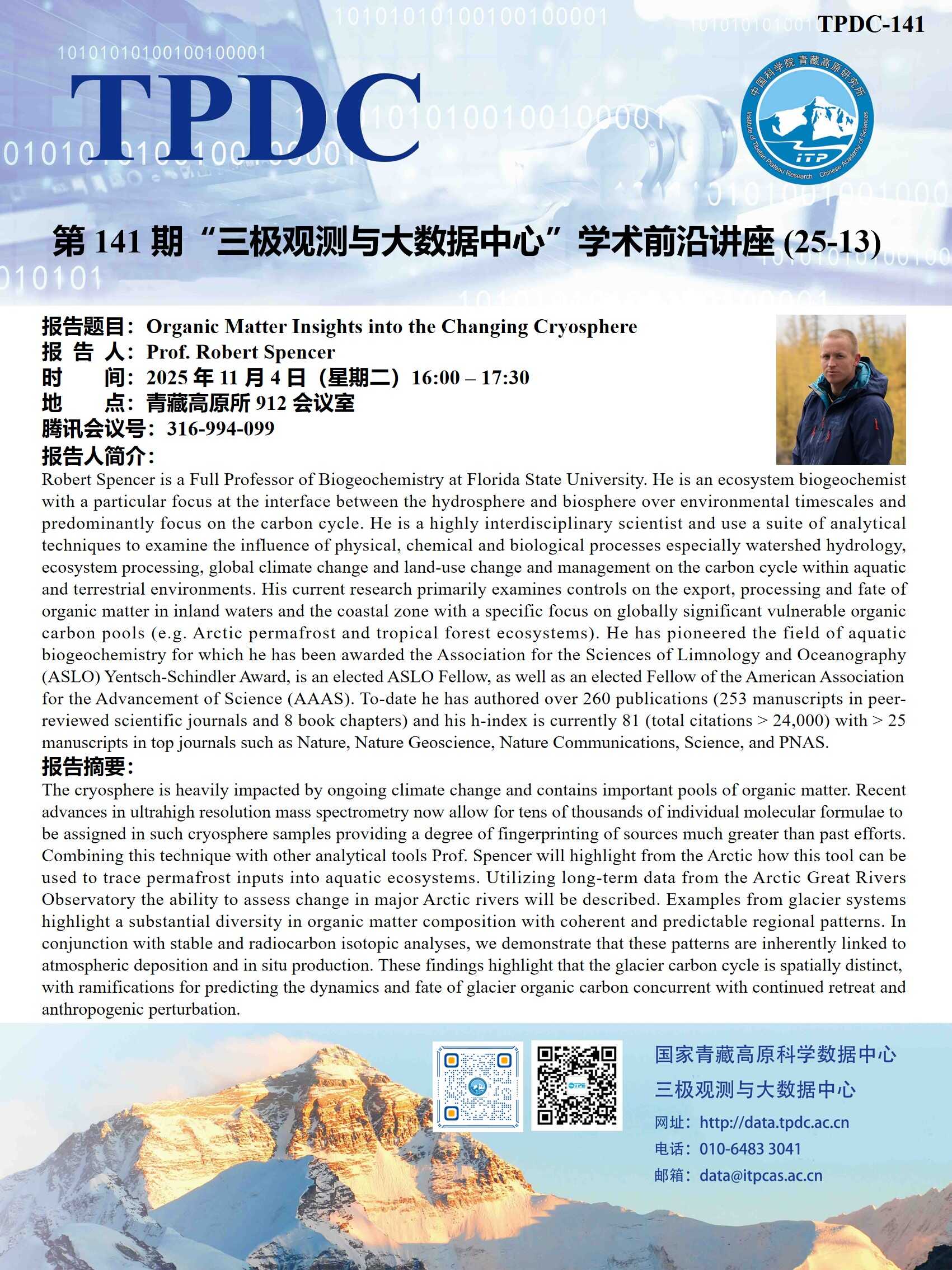 报告题目:Organic Matter Insights into the Changing Cryosphere