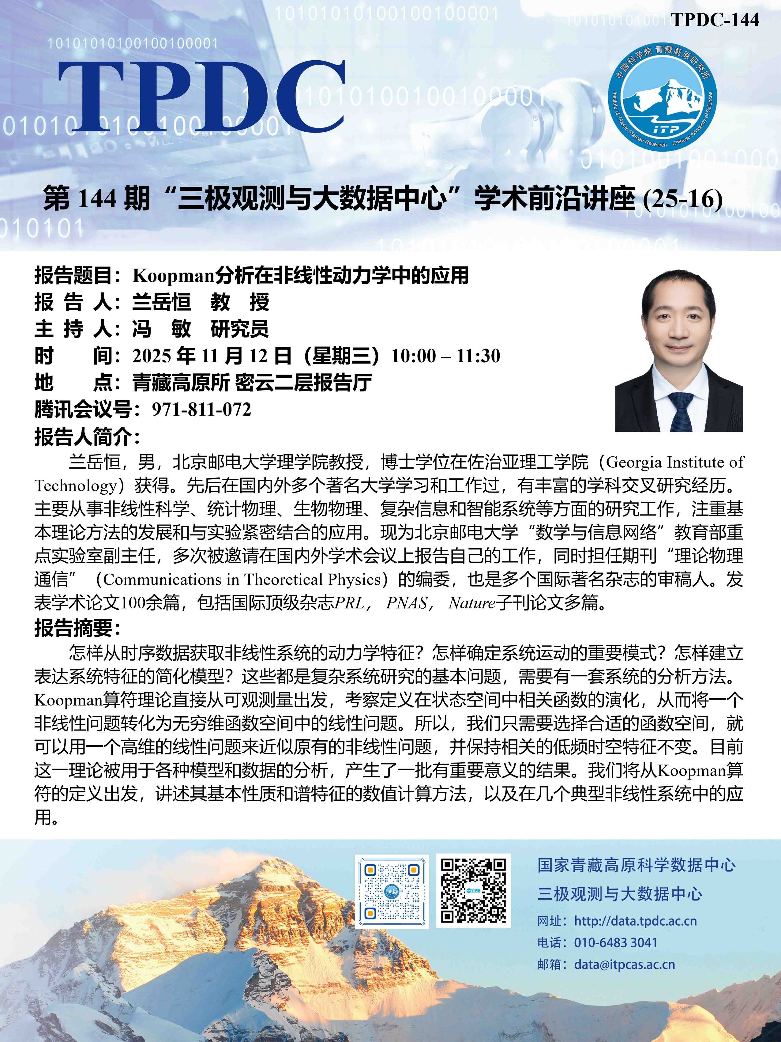 报告题目:Koopman分析在非线性动力学中的应用