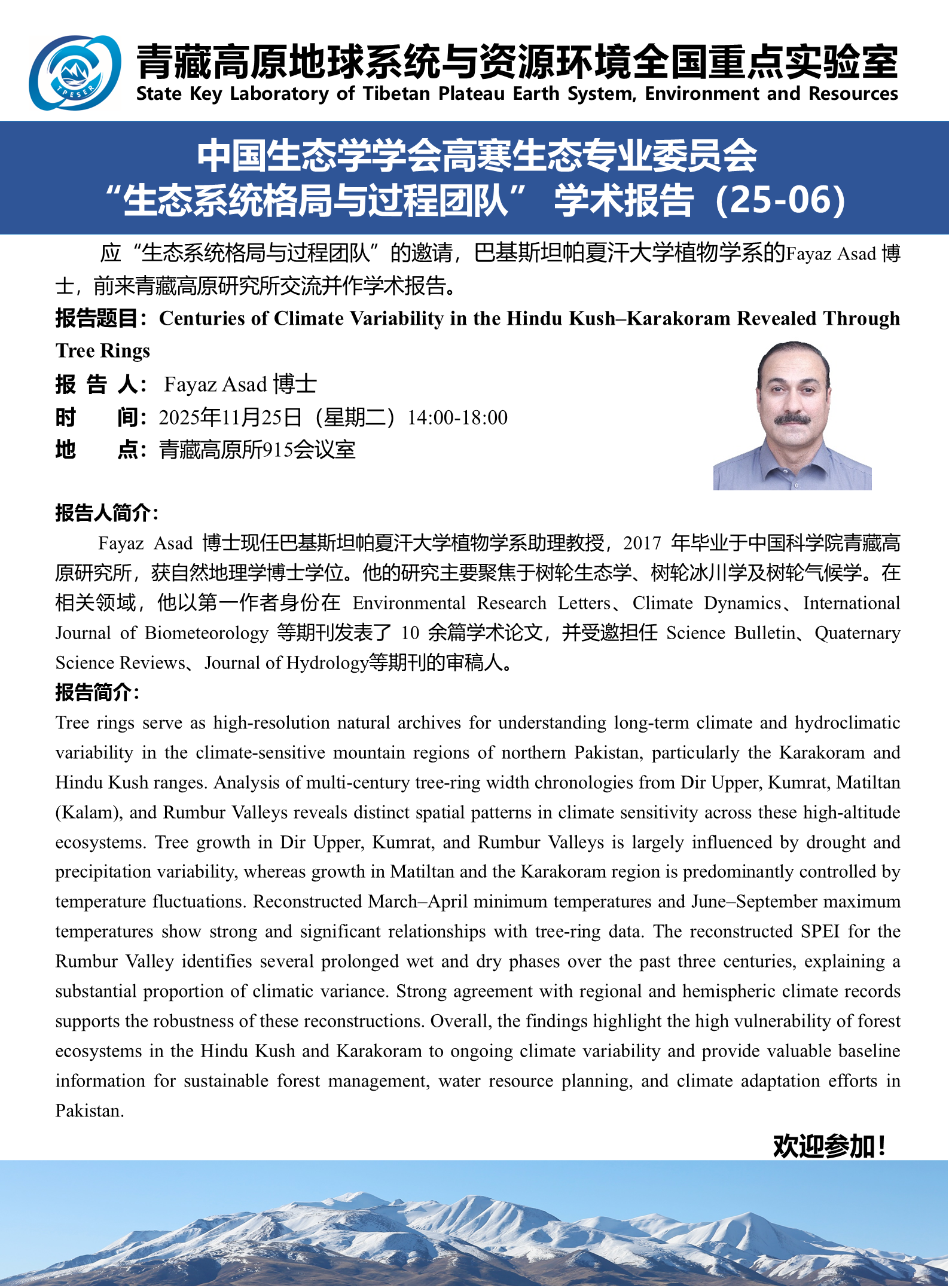 报告题目:Centuries of climate variability in the hindu kush-karakoram revealed throughtree rings