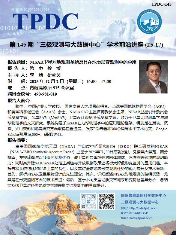 报告题目:NISAR卫星对地观测革新及其在地表形变监测中的应用