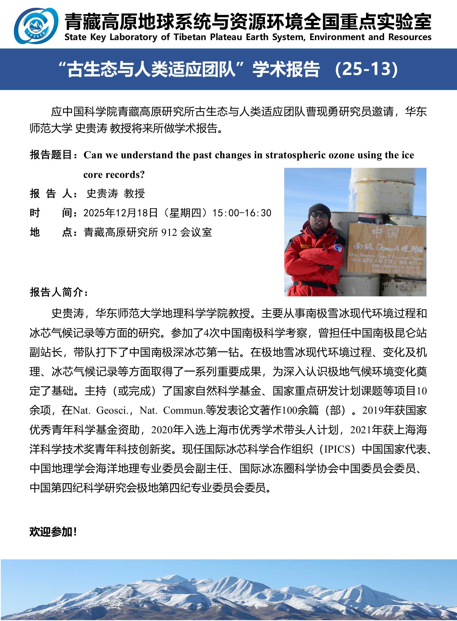 报告题目:Can we understand the past changes in stratospheric ozone using the ice core records?