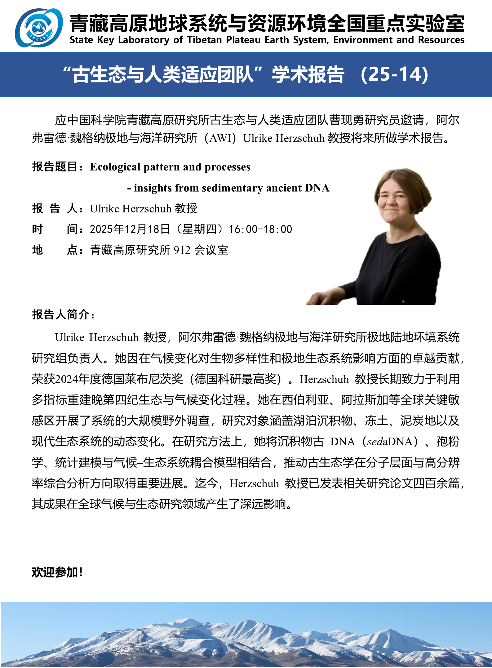 报告题目:Ecological pattern and processes-insights from sedimentary ancient DNA