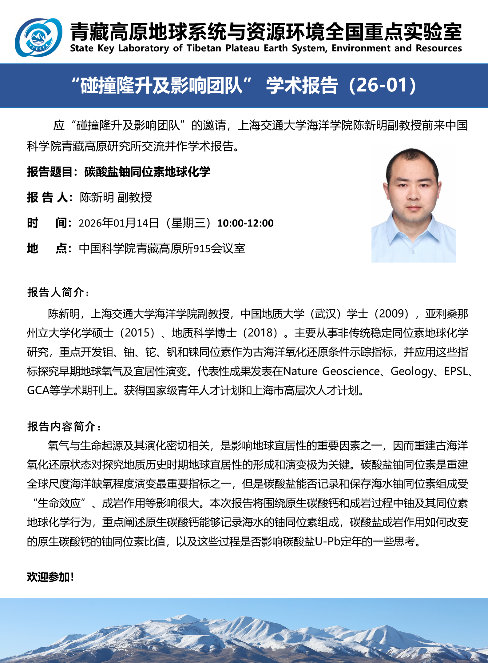 报告题目:碳酸盐铀同位素地球化学
