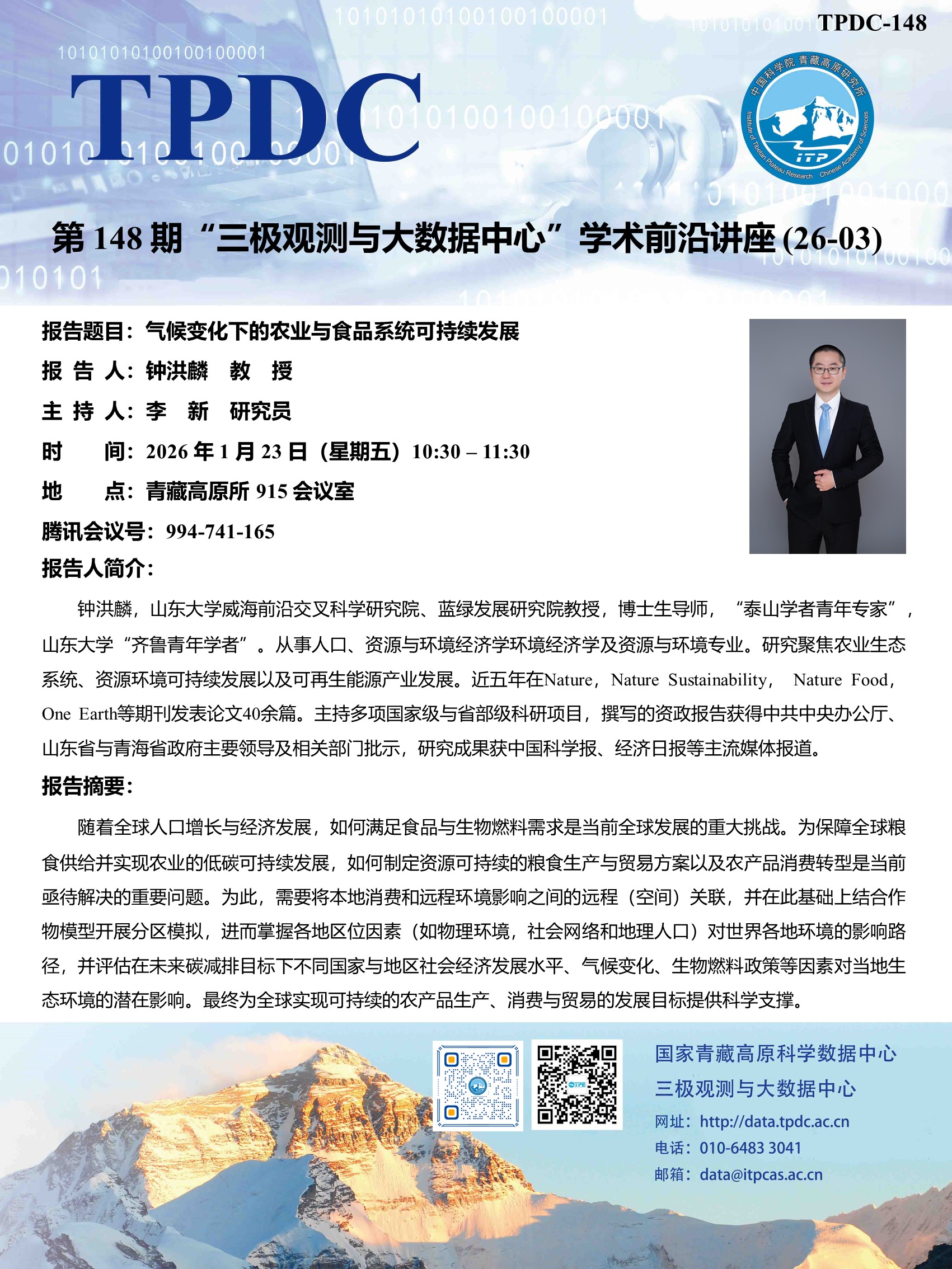 报告题目:气候变化下的农业与食品系统可持续发展