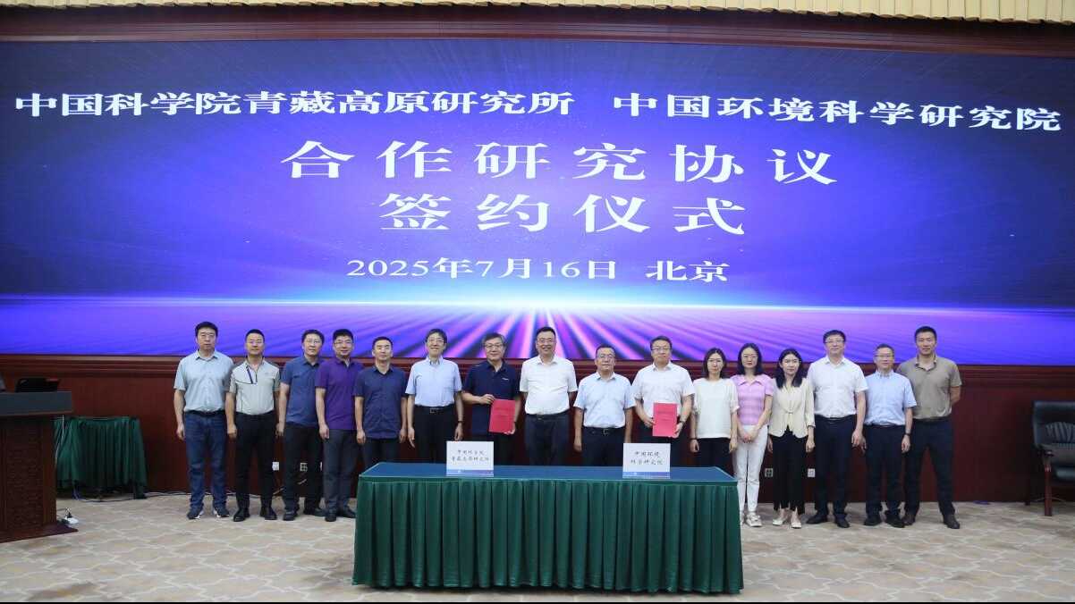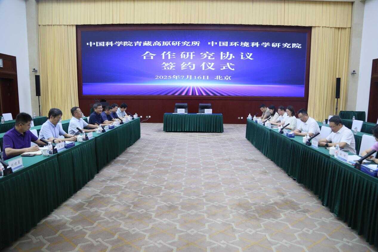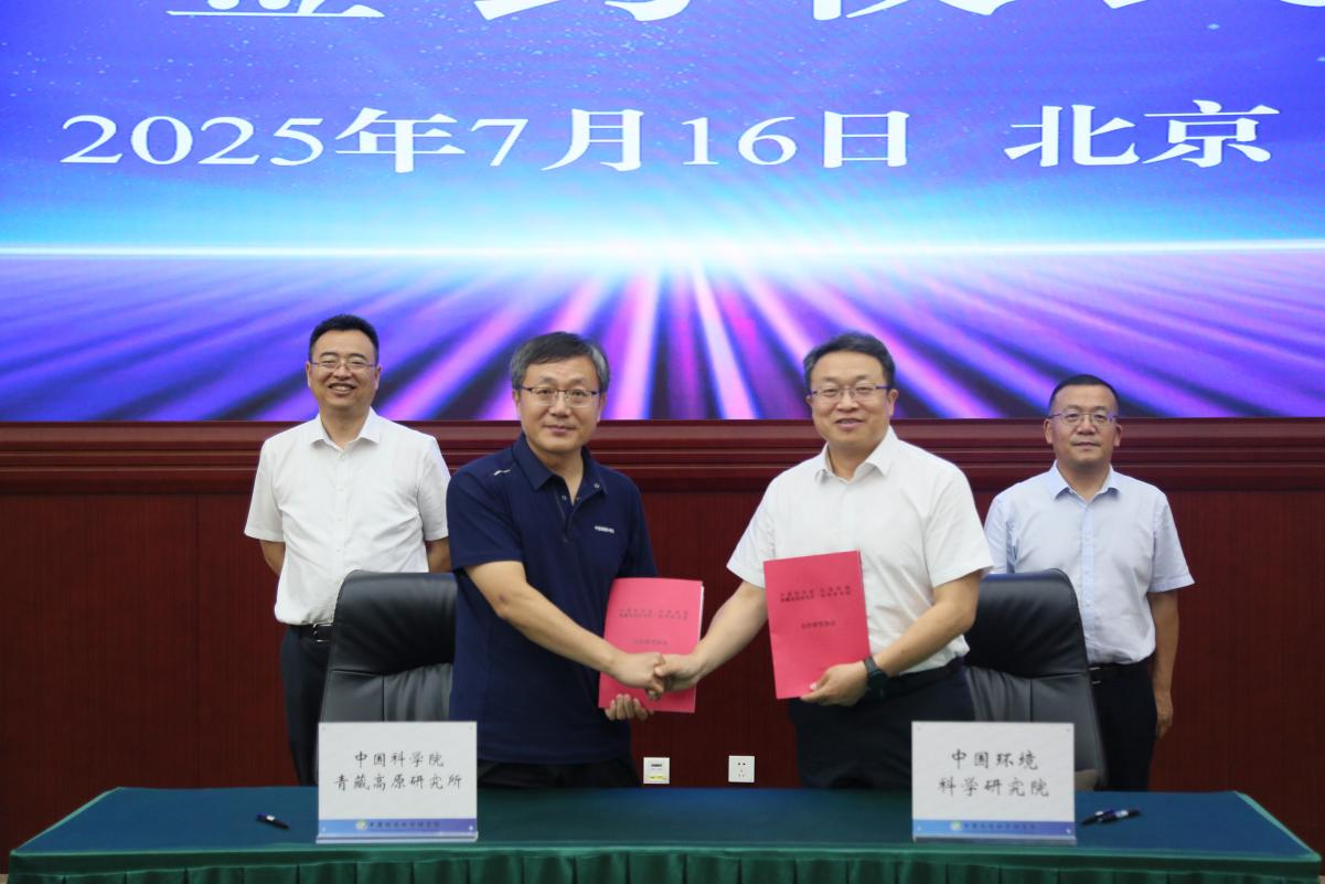 2025年7月16日,中国科学院青藏高原研究所(以下简称中国科学院青藏高原所)与中国环境科学研究院(以下简称中国环科院)开展科技合作交流座谈并签署合作研究协议。中国科学院青藏高原所党委书记、副所长(主持工作)庄绪亮,中国环科院院长、党委副书记席北斗出席并见证签约。中国科学院青藏高原所副所长安宝晟、中国环科院副院长全占军分别代表双方签署协议,中国科学院青藏高原所李新副所长出席会议。