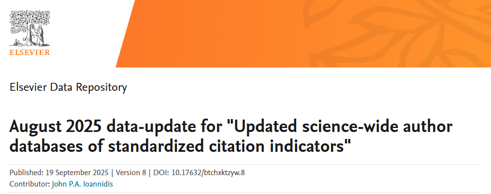 据悉,全球前2%顶尖科学家榜单由爱思唯尔与斯坦福大学John P. A. Ioannidis教授团队共同推出,分为“终身科学影响力排行榜”和“年度科学影响力排行榜”两部分,是目前全球公认具有重要影响力的学术评价结果。作为全球极具公信力的学术评价标杆,该榜单从全球近700万名科学家中,通过基于其论文引用数、h因子、合著者修正的hm因子、单独或第一作者的文章引用数等综合参数,遴选出世界排名前2%的科学家,涵盖22个领域和174个子领域。其中,“终身科学影响力排行榜”聚焦科学家职业生涯综合成就,“年度科学影响力排行榜”榜单则凸显上一年度学术贡献,其评价体系因客观性和全面性被全球学术界广泛采信。