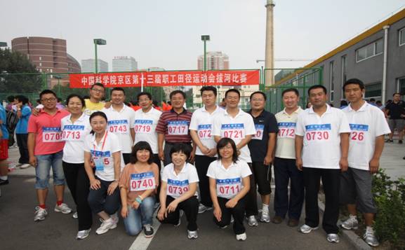 2011年9月4日,中国科学院京区第十三届职工田径运动会预赛在北京航空航天大学体育场举行,我所派出共42名职工和研究生作为运动员参加了本次运动会。所党委谢书记等领导专程到场为我所运动健儿加油鼓劲。