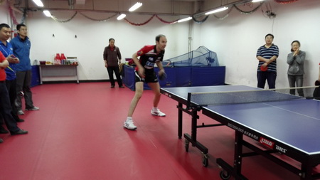 在热烈紧张的比赛气氛下,“友谊第一、比赛第二”的竞技精神也被发挥得淋漓尽致。与正式大赛不同的是,两所选手赛前还交流了球拍底板、球拍胶皮等各项器材参数,口头切磋了彼此的一些基本打法。场外队员,不分“敌友”,每有精彩的对决和动作,大家都齐声叫好。大气所的乒乓高手还对我所的女选手进行了现场点评和指导。