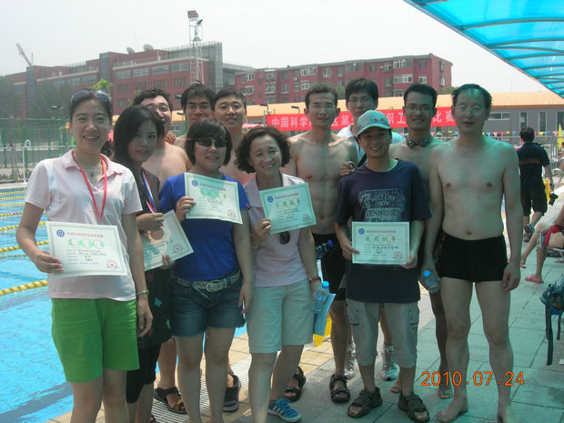 经过激烈角逐,我所职工获得男子甲组50米蛙泳第七名、男子乙组50米蛙泳第六名、100米蛙泳第四名、50米仰泳第七名、男子丙组50米仰泳第八名;女子甲组50米蝶泳第二名、100米自由泳第三名、女子乙组50米仰泳第四名的好成绩;我所还获得了体育道德风尚奖(优秀组织奖)。