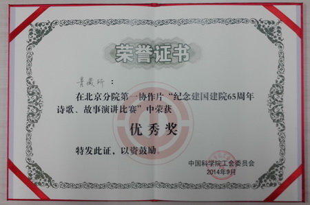 经过激烈角逐,我所最终在比赛中获得优秀奖。