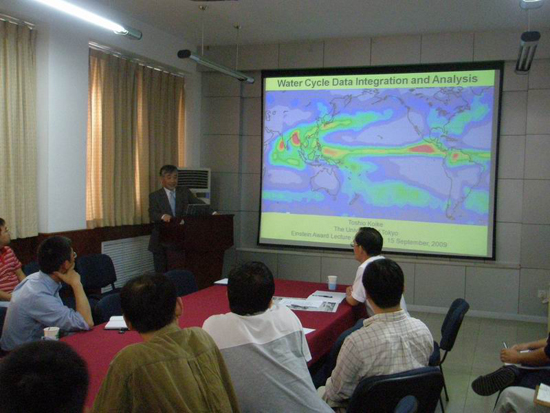 报告会上,Koike教授做了题为“Water Cycle Data Integration and Analysis”的学术报告,在90分钟的学术报告中,他详细介绍了全球气候变暖与水循环、季风降水变化和CEOP计划,并围绕站点观测、卫星观测、和气候模拟三个部分介绍了他领导的课题组参与的水循环资料集成与分析的最新研究进展,与青藏所科研人员就相关问题进行了交流、讨论。作为中科院“爱因斯坦讲席教授”活动的一部分,Koike教授还访问了中科院大气物理所和寒旱所并作学术报告,还参与了青藏所和寒旱所组织的学术研讨会和青年学者座谈会,对研究方向提出了宝贵的意见。