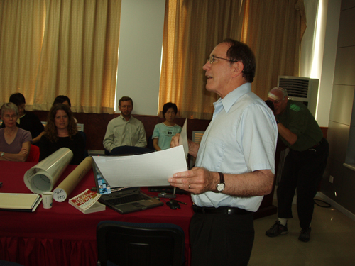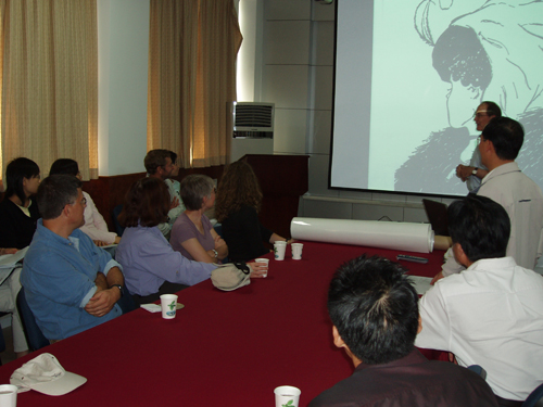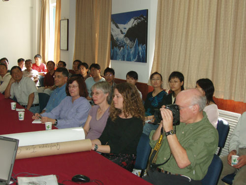 接着,其科研小组的Mary E.Davis教授向大家介绍了她自己的研究领域—冰芯中沙尘信息与季风变化研究。通过她的介绍,大家了解到冰芯中丰富的替代指标信息,并了解到沙尘总量与季风强度和风向变化之间较好的相关性。随后科研小组的俄罗斯籍专家Victor Zagorodnov通过图片向大家介绍了专业性和操作性很强的冰芯钻取方法。这将对科研人员在今后自己的实际工作中大有帮助。