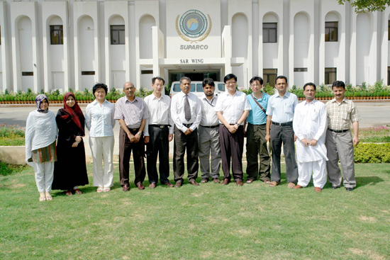 应巴基斯坦国家空间与高层大气研究机构(SUPARCO, Pakistan Space & Upper Atmosphere Research Commission) 邀请,中国科学院青藏高原研究所马耀明研究员、易朝路研究员、刘景时研究员、叶庆华副研究员等四人于2009年5月28日至6月5日对位于卡拉奇的SUPARCO总部进行了短期访问。访问期间,中方人员与SUPARCO卡拉奇总部的主要负责人及其卫星地面接收站的主要研究人员进行了深入交流。SUPARCO主管Mr. Rahmatullah Jilani介绍了SUPARCO的基本情况,包括遥感数据接收、获取与应用处理以及面临的问题等。马耀明研究员介绍了中科院青藏高原研究所的总体情况及青藏高原所在大气过程研究方面的研究进展。刘景时、易朝路、叶庆华分别就青藏高原已经开展的寒区水文、第四纪冰川及现代冰川变化的地面-遥感多平台监测、及研究工作一一做了详细介绍。