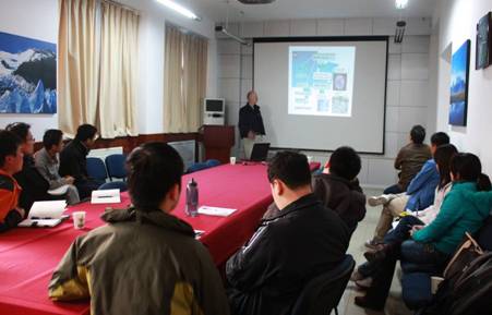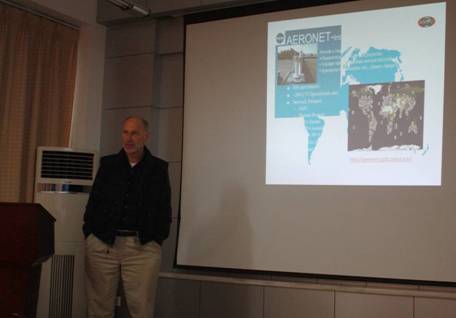 访问期间,Holben教授做了题为Aerosol properties and distributions for Earth System Science from AERONET: What we have accomplished and what we need to accomplish的学术报告,简要介绍了目前全球最大的气溶胶观测网络AERONET的理论基础、发展过程和未来研究方向。随后,Holben教授与我所科研人员进行了深入而广泛的讨论,对过去3年来与我所纳木错站的合作研究给予了高度评价。同时双方就利用太阳光度计监测南亚大气污染对青藏高原的影响等科学问题进行了讨论,并达成了进一步的合作意向。