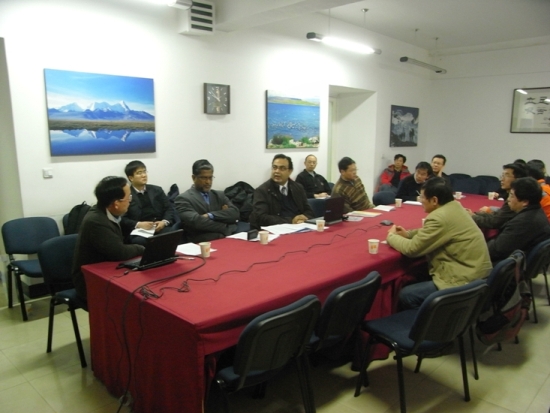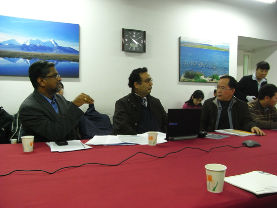 会上,姚檀栋所长向来宾详细介绍了青藏所正在积极推动的国际研究计划—“第三极环境”(Third Pole Environment, TPE)。Shahbaz Khan博士对该计划给予了高度评价。此后,双方就进一步的合作展开了探讨,对未来的合作充满信心。双方商定,将于下月在法国巴黎就该计划进行深入研讨,进一步推动相关研究工作。