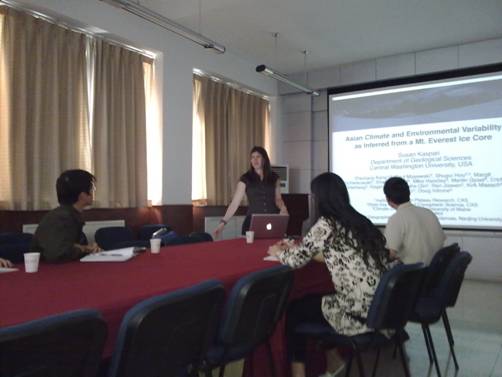 会后,Dr. Kaspari与有关科研人员就雪冰黑炭记录等科学问题进行了讨论,进一步确定了青藏高原其它区域冰芯记录研究的意义,并达成了合作意向。