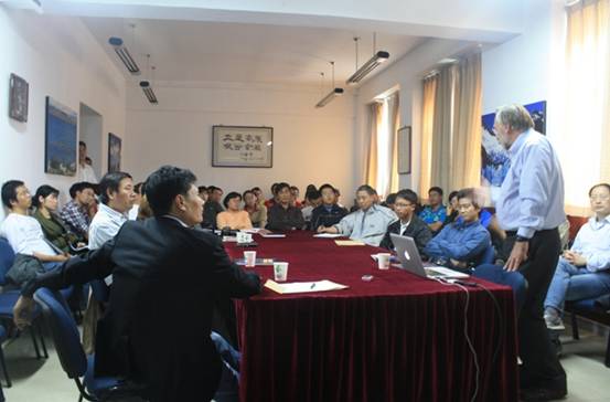 访问期间,Robert Spicer教授作了题为“When Did the Tibetan Plateau Attain its Present Elevation?”的学术报告。报告总结了青藏高原不同地点古高度研究的最新进展,重点阐述如何使用植物化石来获得高原高度和时间, 同时还根据阿萨姆地区的新材料讨论了南亚印度季风开始出现的时间。随后,与会人员就感兴趣的科学问题与Robert Spicer教授进行了现场交流讨论,并就可能开展的合作研究交换了意见,为双方开展青藏高原古高度等方面的合作研究创造了良好条件。