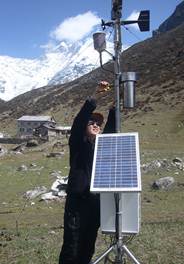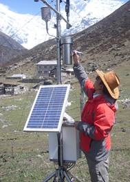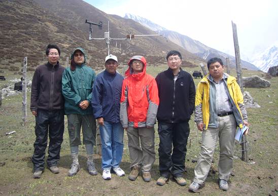 2012年4月23日-5月25日,在“第三极环境(TPE)”国际计划的资助下,中国和尼泊尔科学家第三次在喜马拉雅山南坡尼泊尔朗塘(Langtang)地区开展冰川、径流和气象等方面的野外考察。参加此次考察活动的中方科考人员有我所田立德研究员、余武生副研究员、李生海、李久乐、朱美林等5人,尼方科考人员有尼泊尔特尼布凡大学水文气象系Lochan P. Devkota教授等2人。由于山高路险,只能乘车1天,余下路程全赖步行,往返徒步跋涉需要历时7天之久。