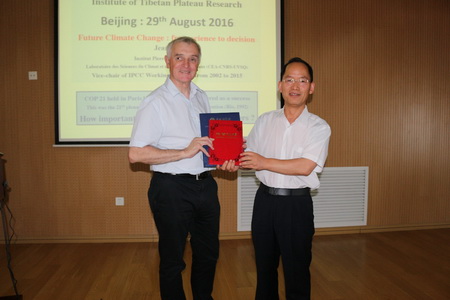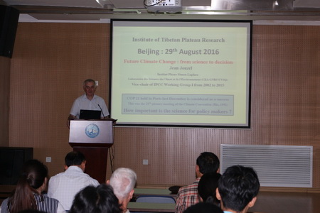 应中国科学院青藏高原研究所(以下简称“青藏高原所”)、青藏高原地球科学卓越创新中心(以下简称“青藏卓越中心”)姚檀栋院士的邀请,中国科学院国际杰出学者、法国原子能与可再生能源委员会(CEA)Pierre-Simon Laplace研究所气候与环境科学实验室(LSCE)Jean Jouzel教授于8月29日和9月1日在青藏高原所和青藏卓越中心作学术报告。来自中科院青藏高原所、青藏卓越中心、冰冻圈科学实验室等单位的研究人员参与了学术报告交流会。 8月29日,Jean Jouzel教授作了“未来气候变化”的主题报告。报告开始前,姚檀栋院士对Jean Jouzel教授的到来表示热烈欢迎,并为Jean Jouzel教授颁发了中国科学院国际杰出学者荣誉证书以及中国科学院青藏高原研究所荣誉教授聘书。Jean Jouzel教授的报告指出,自从工业革命以来,人类活动已经导致了温室气体的快速增加。增加的温室气体中70%是由人类化石燃料的燃烧引起的。增加的热量主要被海洋所吸收。这导致了海洋上层热容量和海平面的持续升高、北半球春季积雪覆盖面积以及夏季北极海冰面积的持续下降。全球变暖已经对生态系统和人类社会产生了较大影响,造成了如海洋酸化、极端气候事件频发、粮食安全受到威胁、生物多样性减少等严重后果。针对这些气候变化情况,2015年在巴黎举行的第21届联合国气候变化大会提出了以下三个主要方面:1、将变暖幅度控制在2℃以下,争取进一步控制到1.5℃以下;2、注重采取适应措施应对全球变暖;3、为这些目标提供相应的资金支持。Jean Jouzel教授指出,将全球变暖幅度控制在2℃以下这一目标是可以实现的。将适应决策与温室气体大规模减排相结合可以降低气候变化带来的风险。然而,可供人们采取行动的时间窗口期正在快速缩短。IPCC第五次评估报告指出,与2℃目标相匹配的65%的碳预算已经被使用。因此,减少温室气体的排放迫在眉睫。 报告结束后,Jean Jouzel教授在姚檀栋院士、朴世龙教授和高晶副研究员等人的陪同下参观了中国科学院青藏高原环境变化与地表过程重点实验室、大陆碰撞与高原隆升重点实验室和高寒生态学与生物多样性重点实验室。 9月1日,Jean Jouzel教授作了“冰芯研究历史:水同位素贡献”的主题报告。报告涉及了南北极冰芯研究的发展历程、水同位素研究的物理学基础和冰芯水同位素的气候学意义及稳定同位素大气环流模型在冰芯研究中的运用等方面内容。冰芯的研究最早开始于20世纪50年代。人类获取的第一支冰芯来自于格陵兰岛。Dansgaard和Copenhagen团队为冰芯研究做出了开创性工作。截至目前,已有多种方法被用于解译冰芯氧同位素蕴含的古气候信息。Dansgaard 利用瑞利分馏模型很好地解译了格陵兰岛冰芯的古气候意义。后续研究利用不断发展的野外观测和模型,使得“同位素古温度计”不断精确。目前最先进的稳定同位素大气环流模型为冰芯同位素记录的解译提供了更好的方法。Jean Jouzel教授还介绍了目前通用的几种稳定同位素模型的最新研究进展,以及新的数据集,如连续观测水汽同位素数据、卫星观测数据等。另外,他还指出,δ17O的测量可以改进沿海地区的数据解译工作。 姚檀栋院士认为,Jean Jouzel教授的报告提升了我们对冰川研究的深入认识与理解。报告结束后,青藏高原所及相关单位研究人员与Jean Jouzel教授展开了热烈的交流和讨论。 9月3日,Jean Jouzel教授在姚檀栋院士的陪同下访问了冰冻圈科学国家重点实验室,并作了有关冰芯研究历史的主题报告。60多名老师和学生参加了此次报告。报告结束后,在康世昌研究员的陪同下,Jean Jouzel教授和姚檀栋院士参观了冰冻圈科学国家重点实验室。 Jean Jouzel教授简介:Jean Jouzel教授是法国原子能与可再生能源委员会(CEA)Pierre-Simon Laplace研究所气候与环境科学实验室(LSCE)教授,是古气候学研究领域最知名的科学家之一,是全球极地冰芯研究的主要领导者之一。 Jean Jouzel教授2016年入选中国科学院国际杰出学者计划,2016年当选美国科学院外籍院士。 Jean Jouzel教授从上世纪70年代起开始利用南北极的冰芯开展古气候记录研究。他最著名的研究成果是利用冰芯中的水同位素重建了过去几十万年以来的气候记录,这项成果有助于建立气候变化与同期空气中CO2含量的关系。他长期担任IPCC第一工作组副主席。他因在极地冰川与气候系统研究领域所做出的杰出贡献而获得了多项学术荣誉。包括1997年欧洲地球物理学会米兰科维奇奖章,2002年法国国家科研中心金质奖章(法国科学界最高奖),2003年美国地球物理协会Roger Revelle奖章,2012年被誉为“地球与宇宙学领域的诺贝尔奖”的维特勒森奖。截止到2016年,Jean Jouzel教授一共发表了超过400篇学术论文,其中有48篇论文发表在Nature和Science杂志上,论文总引用频次超过30000次。