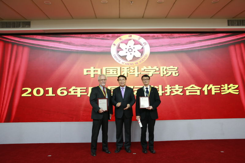 1月16日,中国科学院国际合作奖颁奖仪式在北京举行。颁奖现场,中国科学院院长白春礼院士为2016年中国科学院国际合作奖获奖者颁发了证书和奖牌。我院本次共有包括青藏高原研究所特聘教授陈德亮在内的3名外籍专家获此殊荣。 陈德亮教授是一名国际知名的气候学家。他先后被选为瑞典皇家科学院院士、哥德堡皇家艺术与科学院院士、发展中国家科学院院士。作为青藏高原所的特聘教授,他为青藏高原研究做出重要贡献。作为项目合作者或指导专家,他积极推动并参与青藏高原所牵头的重大科研项目,包括中科院战略性先导科技专项(B类)、基金委重大项目等,与中科院青藏高原所科学家合作在第三极地区水体多相态转换、西风季风作用下第三极地区环境变化等方面产出了众多亮点成果;陈德亮教授还担任“第三极环境(TPE)”国际计划执行委员会委员,积极参与TPE计划的各项工作,为该计划的发展和宣传做出了重要的贡献,并推动TPE计划向泛第三极环境国际计划(Pan-TPE)发展;他与姚檀栋院士等100多位科学家完成的《西藏高原环境变化科学评估》专题报告,综合评估了青藏高原从过去2000年到未来100年的环境变化,为西藏自治区开展2015-2030生态屏障建设规划提供了重要的科学依据;同时,他积极组织和推动人才培养的各类计划和培养模式,为青藏高原所的人才培养做出了贡献。
