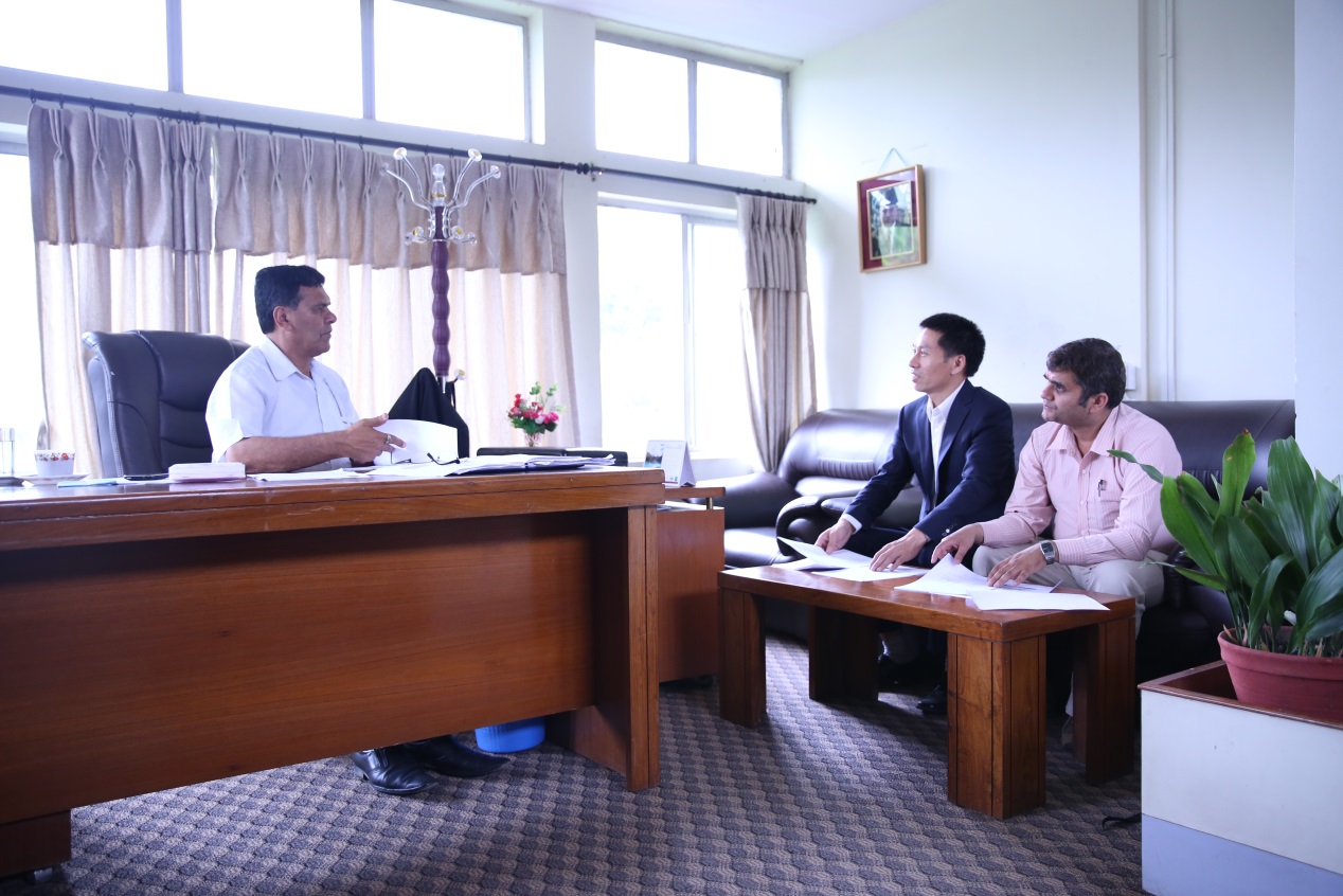 6月6日下午,特里布文大学校长尔塔•拉杰•卡尼亚(Tirth Raj Khaniya)教授邀请中国科学院加德满都科教中心执行主任梁尔源研究员、副主任维诺德•达瓦迪(Binod Dawadi)副教授、徐田利博士一行三人召开座谈会,讨论科教中心的建设与发展相关事宜。梁尔源首先转达了中心主任姚檀栋院士对卡尼亚校长的问候。随后,梁尔源介绍了科教中心2017年上半年的主要工作进展以及下一步工作计划,并针对中心执行委员会筹建方案、特里布文大学2017年新教职工的教育与科研培训计划等同卡尼亚校长交换了意见。卡尼亚校长充分肯定了科教中心的工作成绩,尤其提到科教中心设立的优秀硕士生奖学金以及青年教师培训班为大学中心校区营造了良好的科研氛围。卡尼亚校长希望科教中心进一步发挥引领作用,激发更多尼泊尔学者对科研的兴趣,带动相关学科的发展,在“一带一路”的国际合作框架下开创中尼科教合作新局面。