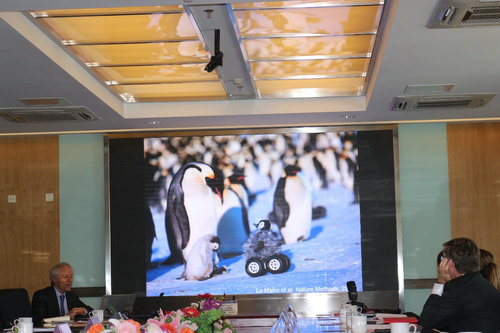 4月16日上午,挪威奥斯陆大学副校长Svein Stølen教授带领挪威代表团一行九人访问中科院青藏高原研究所。同行人员包括挪威科学院院士及前主席、挪威奥斯陆大学Nils Chr. Stenseth教授;法国科学院院士、挪威科学院外籍院士、法国斯特拉斯堡大学Yvon Le Maho教授;奥斯陆大学Stein Roar Fredriksen教授等。 中科院国际合作局曹京华局长、青藏高原研究所姚檀栋院士向代表团表示欢迎,参加座谈的还有中科院动物所张知彬研究员以及中科院青藏高原所张凡研究员、艾丽坤研究员等。 会上,曹京华局长介绍了中科院国际合作概况,重点介绍了“一带一路科学组织联盟”进展。姚檀栋院士介绍了将南极、北极和第三极作为有机整体进行研究的三极大科学计划,阐述了该计划的背景、构想及初步方案,并提出了中挪在极地研究可能的合作领域。挪威奥斯陆大学副校长Svein Stølen介绍了挪威奥斯陆大学概况,Nils Chr. Stenseth教授、Yvon Le Maho教授、动物所张知彬研究员分别介绍了各自在北极、南极和第三极地区的生物多样性研究,双方探讨了在观测、研究和人才培养等方面的未来合作。双方一致认为,中挪、中法极地研究合作潜力巨大,并确定了初步合作研究意向。