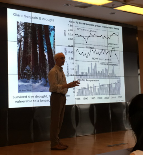 9月11日,应中科院青藏高原所三极监测与大数据中心李新研究员邀请,加州大学杰出教授Roger Bales 和 Martha Conklin教授到青藏高原所访问交流并做了精彩的学术报告。这是青藏高原所三极监测与大数据中心成立以来组织的第1次“学术前沿报告”,报告由李新主持。 Bales教授是加州大学内达华山脉研究所的所长,他从事水文和气候相关领域的研究30多年,发表相关论文140多篇。他目前的工作是帮助美国加州建立知识库,从而有效地制定政策使得水资源、关键生态系统和经济能够适应气候变暖的影响。此次Bales的报告题目为“Lessons on drought resilience & water security: California's Sierra Nevada”。报告中,他首先介绍了位于内达华山脉南部的4个地面关键带观测站(CZO),基于地面数据分析其生态系统对于加州近年来(2012-2016年)极端干旱是如何响应的。其次,基于地面蒸发观测与卫星植被指数的关系,构建估算整个区域蒸发的模型,降水与蒸发的差值标示了植被的抗旱性。研究的结果表明水源森林蒸散量的管理至关重要,有效利用蓄水是水安全的核心。 Conklin教授是美国国家科学基金会位于内华达山脉关键带观测站的联合PI,着重于地下水-地表水的相互作用。她在土壤和地下水的有机化学分布以及积雪的化学过程等领域进行了广泛的研究。最近,她把重点放在山区水源集水区。此次,她的报告题目为“Headwaters to Groundwater: Whole Basin Management”。在报告中,Conklin就如何利用模型建立水源与地下水的关系,从而改善加州水安全的问题在以下方面展开了讨论:积雪如何更好的在模型中表示才能改善流域对扰动的响应预测;怎样的空间校正能改善流域的诊断与预报;改进的模型能否帮助我们更好得管理水资源以及恢复“开采”的地下水。 报告结束后,两位教授与到会的老师和同学就地面观测、水环境模型以及水安全等问题进行了深入交流。