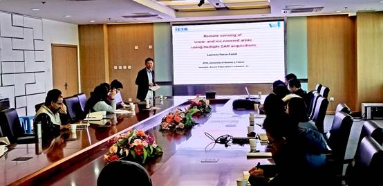 12月28日,应环境变化与地表过程重点实验室徐柏青研究员邀请,法国雷恩大学电子电信研究所波与信号系主任Laurent Ferro-Famil教授来我所访问并做学术报告。报告由徐柏青研究员主持,在京部分老师、博士后及研究生参加此次报告会并进行了相关的学术讨论。 Laurent Ferro-Famil教授报告题目为“Remote-sensing of snow- and ice-covered areas using multiple SAR acquisitions”。首先,Laurent教授介绍了双频重访PolSAR数据在山区春季积雪制图的应用和同化多时相SAR数据的气象模型对积雪场结构的估算。随后,Laurent教授详细介绍了雷恩大学SAPHIR团队自制地面SAR观测系统装置,分别利用X、Ku波段和X波段研究了积雪场及海冰高分辨率三维结构特征。最后Laurent教授介绍了该团队利用机载雷达系统对Alpine 冰川重复勘察,构建了该冰川三维结构模型,冰下厚达百米处的基岩地形仍清晰可辨。报告引起了与会师生的广泛兴趣,并在会后进行了深入的讨论。 报告结束后,Laurent教授与到会人员就极化干涉SAR在雪冰分离数据处理及冰川三维结构特征描述等问题进行了深入细致讨论。