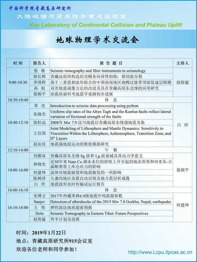 大陆碰撞与高原隆升重点实验室 地球物理学术交流会