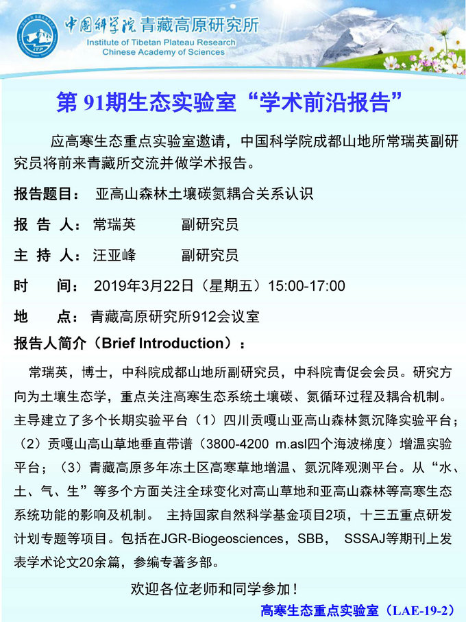 高寒生态重点实验室第91期学术前沿报告(19-2)