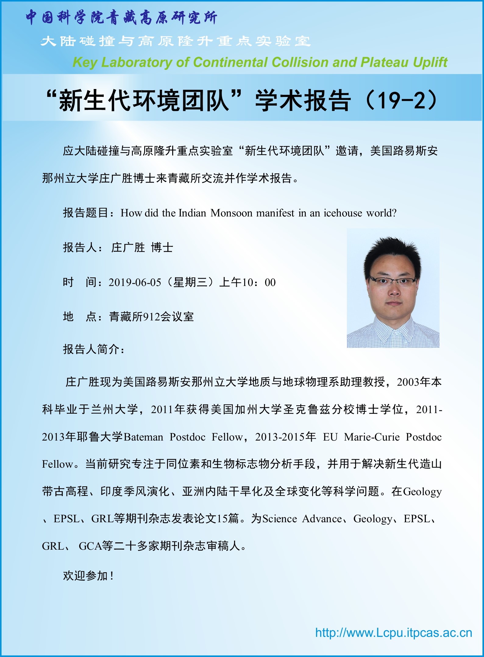大陆碰撞与高原隆升重点实验室 “新生代环境团队”学术报告(19-2)