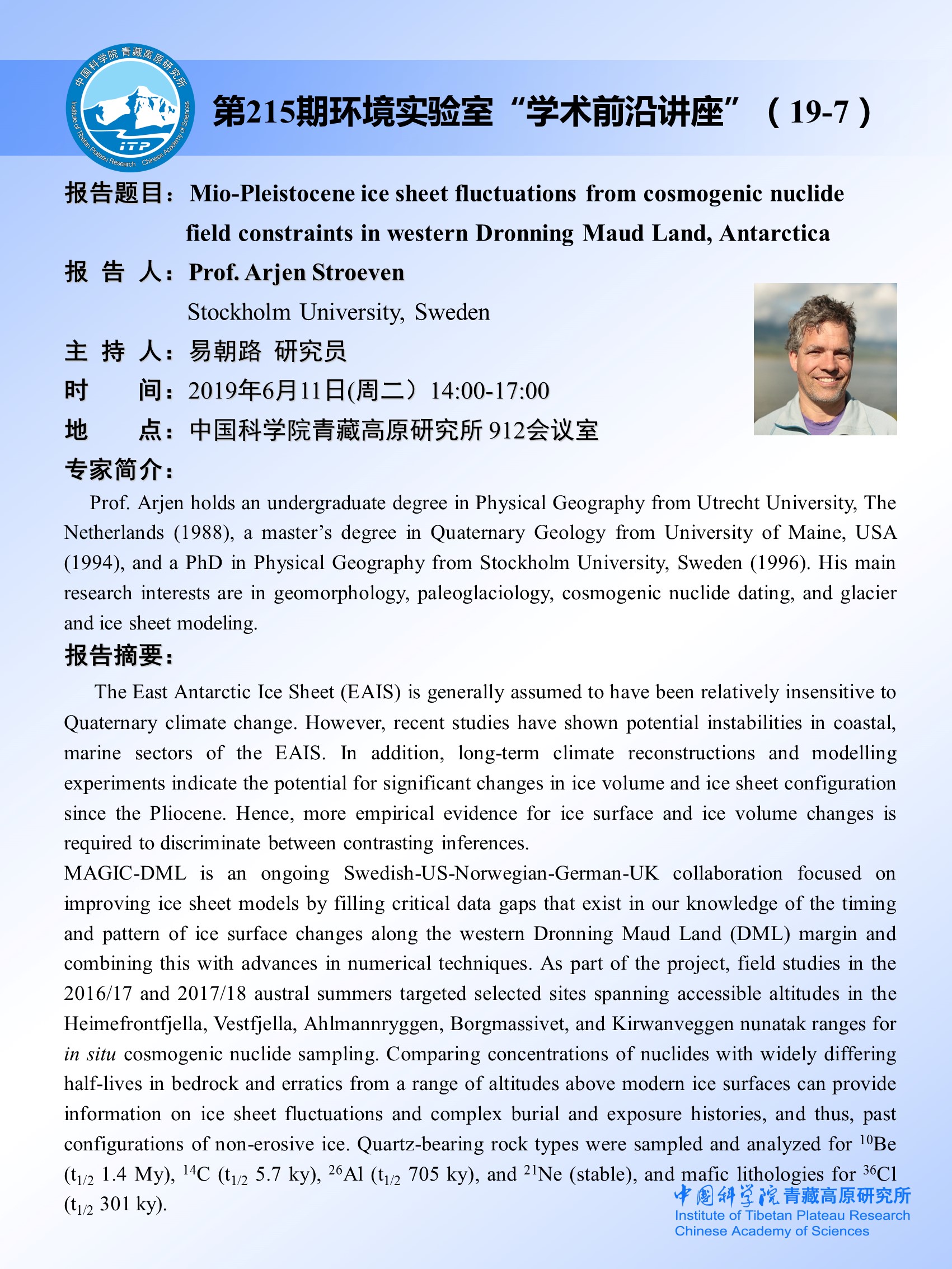 第215期环境实验室“学术前沿讲座”(19-7)