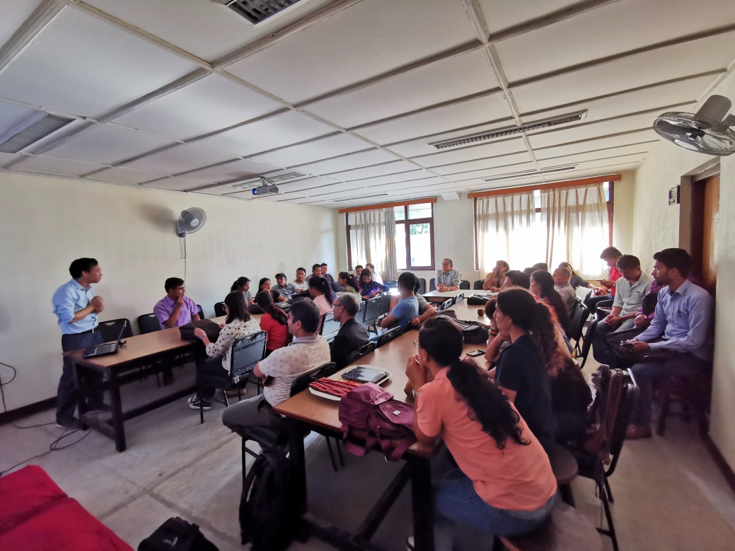 张知彬研究员在尼泊尔特里布文大学动物系做了题为“Biological Consequence of Global Change”的科研讲座,并介绍了国际动物学会近些年开展的系列活动。他指出尼泊尔是研究动物多样性的理想区域,希望今后以加德满都中心为桥梁,在尼泊尔开展科研和培训活动。张知彬研究员的讲座深受大学师生欢迎,动物系主任泰吉·巴哈杜尔·塔帕(Tej Bahadur Thapa)教授表示他们会以本次交流为契机,尽快加入到国际动物学会,促进相关研究的发展。报告之后,赵平研究员陪同张知彬研究员参观了即将完工的加德满都中心实验办公楼、公寓楼及观测场。
