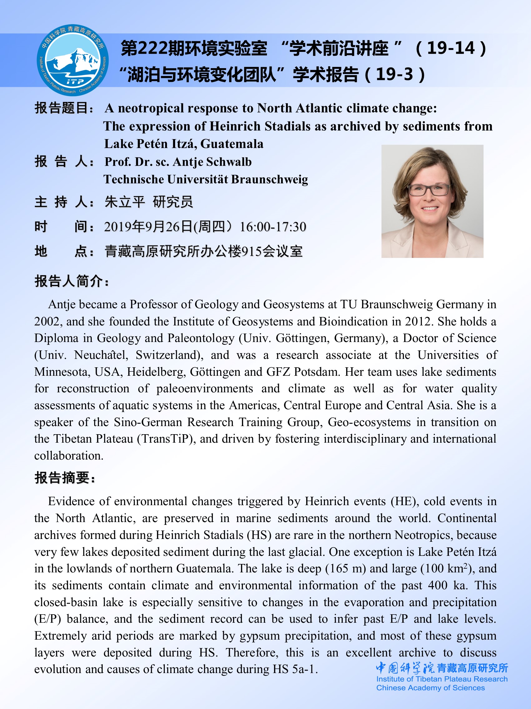 第222期环境实验室“湖泊与环境变化团队”学术报告(19-3)[2019.9.26]