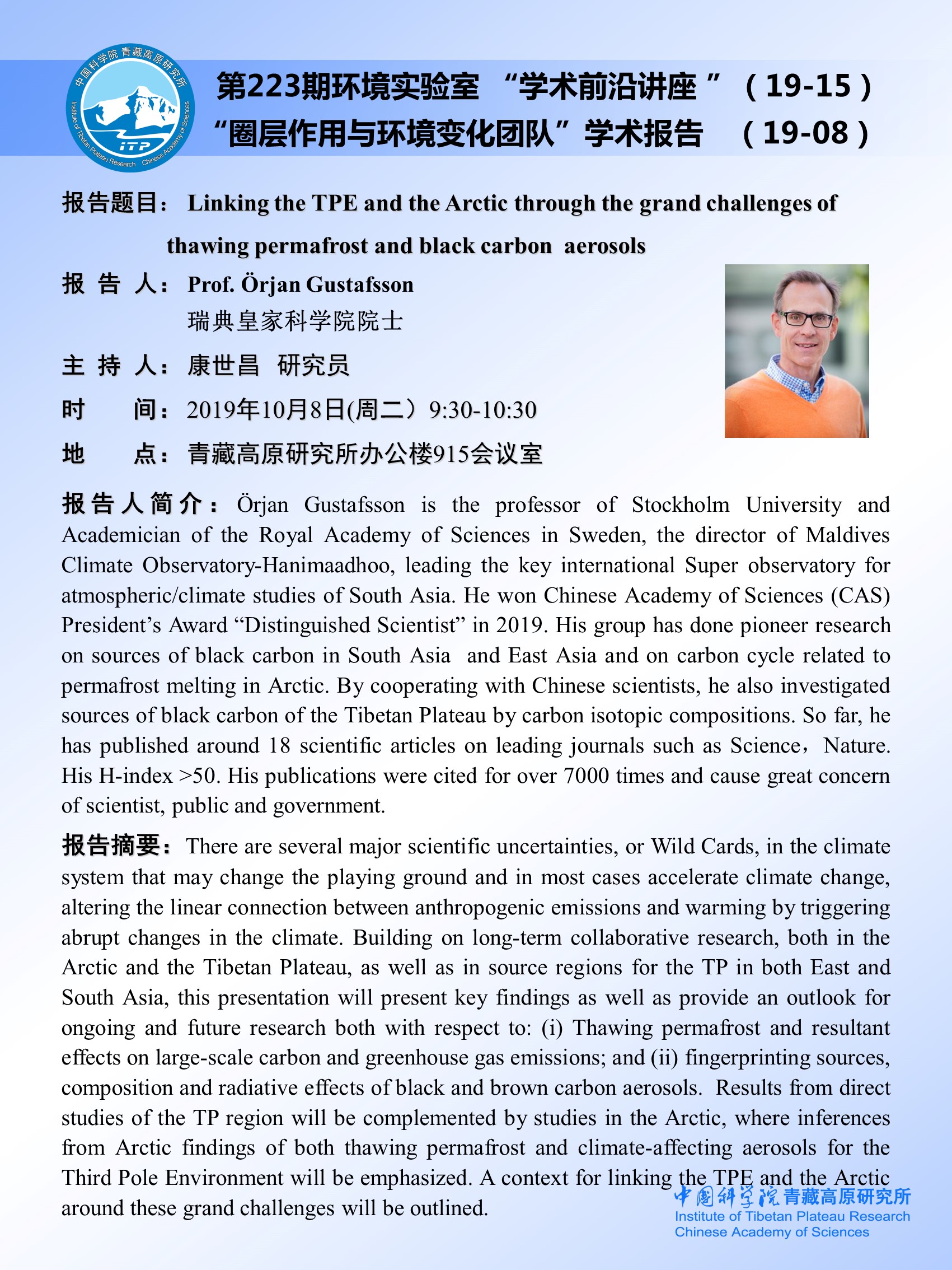 第223期环境实验室“圈层作用与环境变化团队”学术报告(19-8)[2019.10.8]