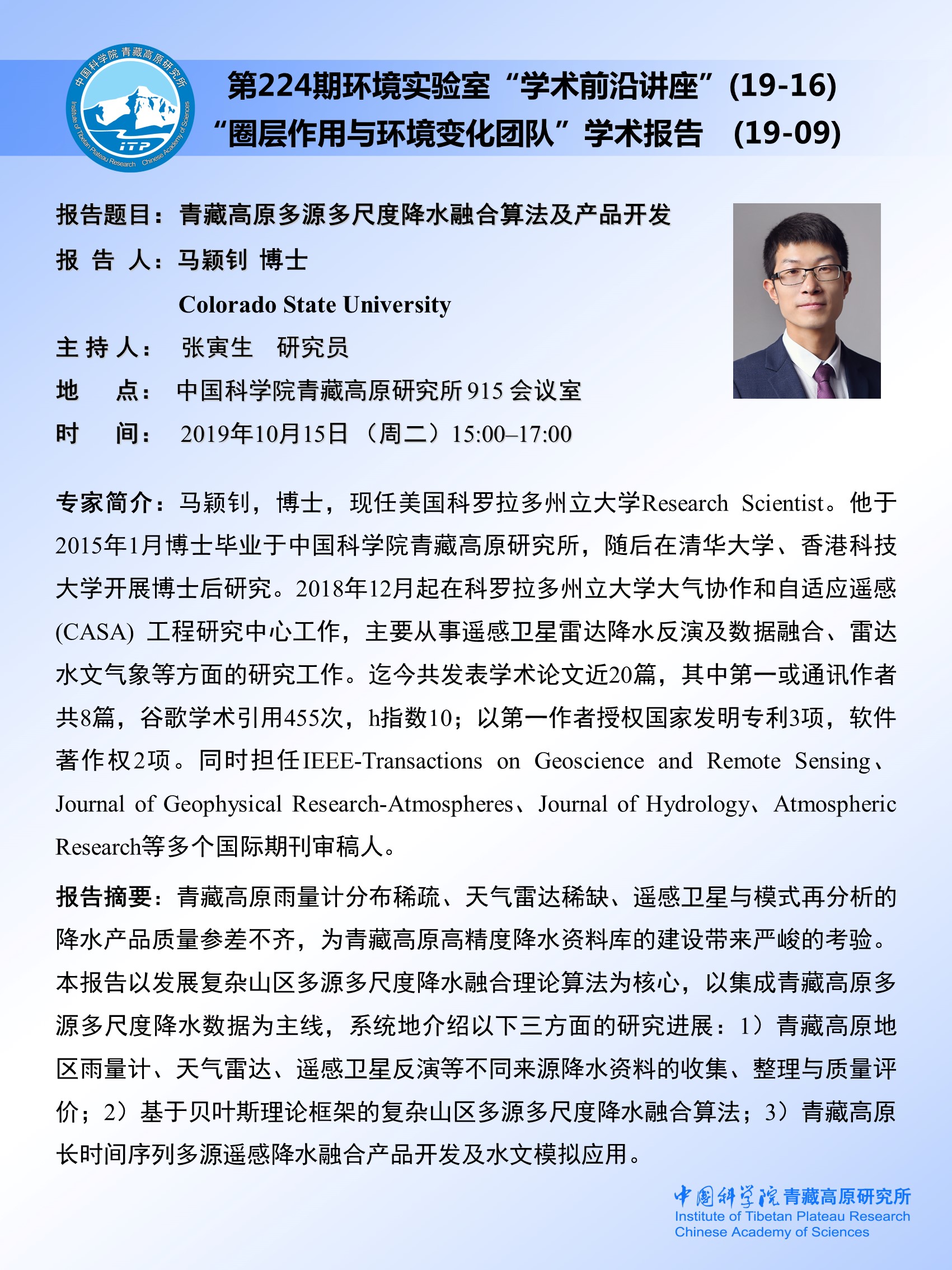 第224期环境实验室“圈层作用与环境变化团队”学术报告(19-9) [2019.10.15]