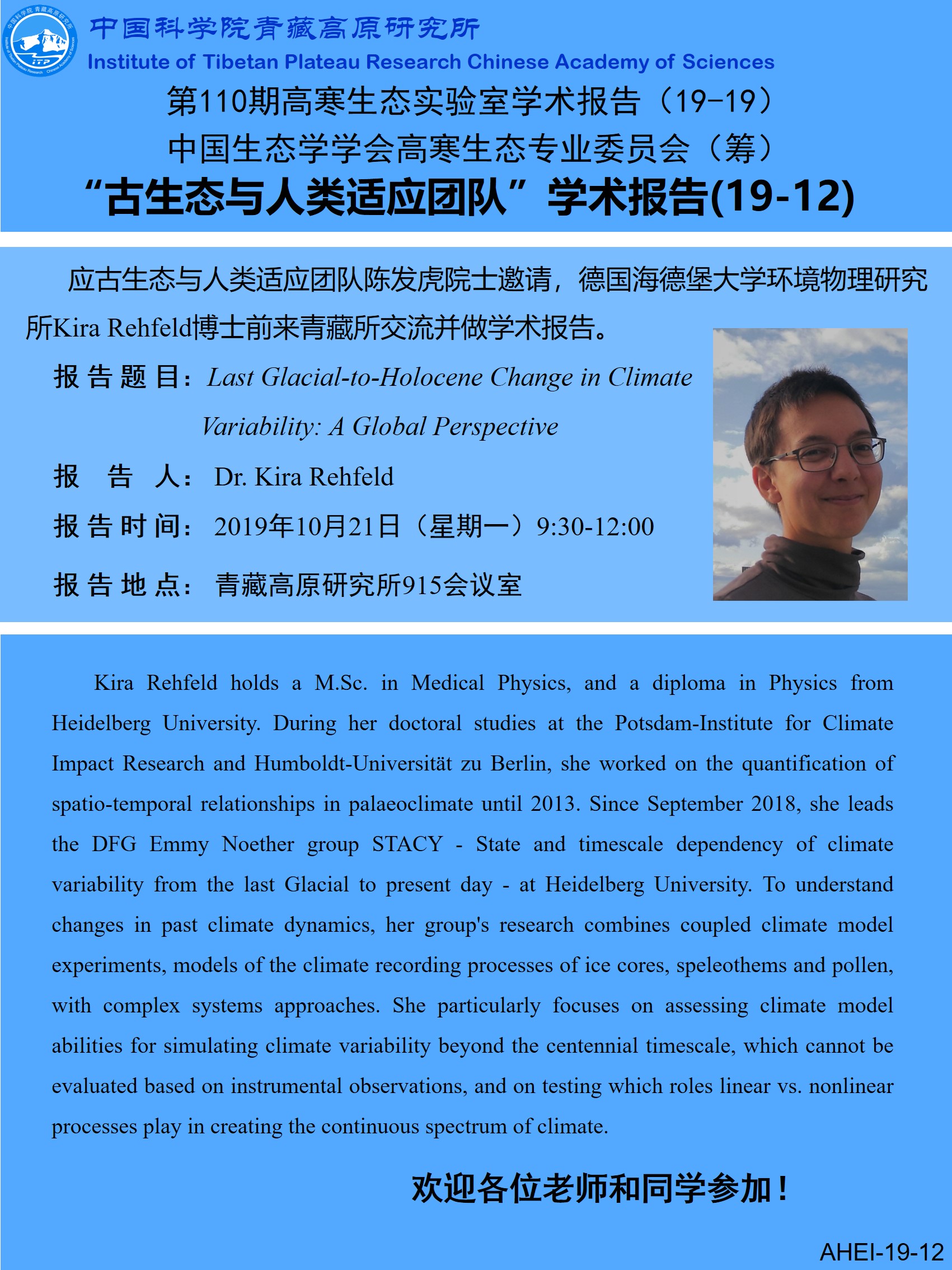 高寒生态重点实验室“古生态与人类适应团队”学术报告(19-12)[2019.10.21]
