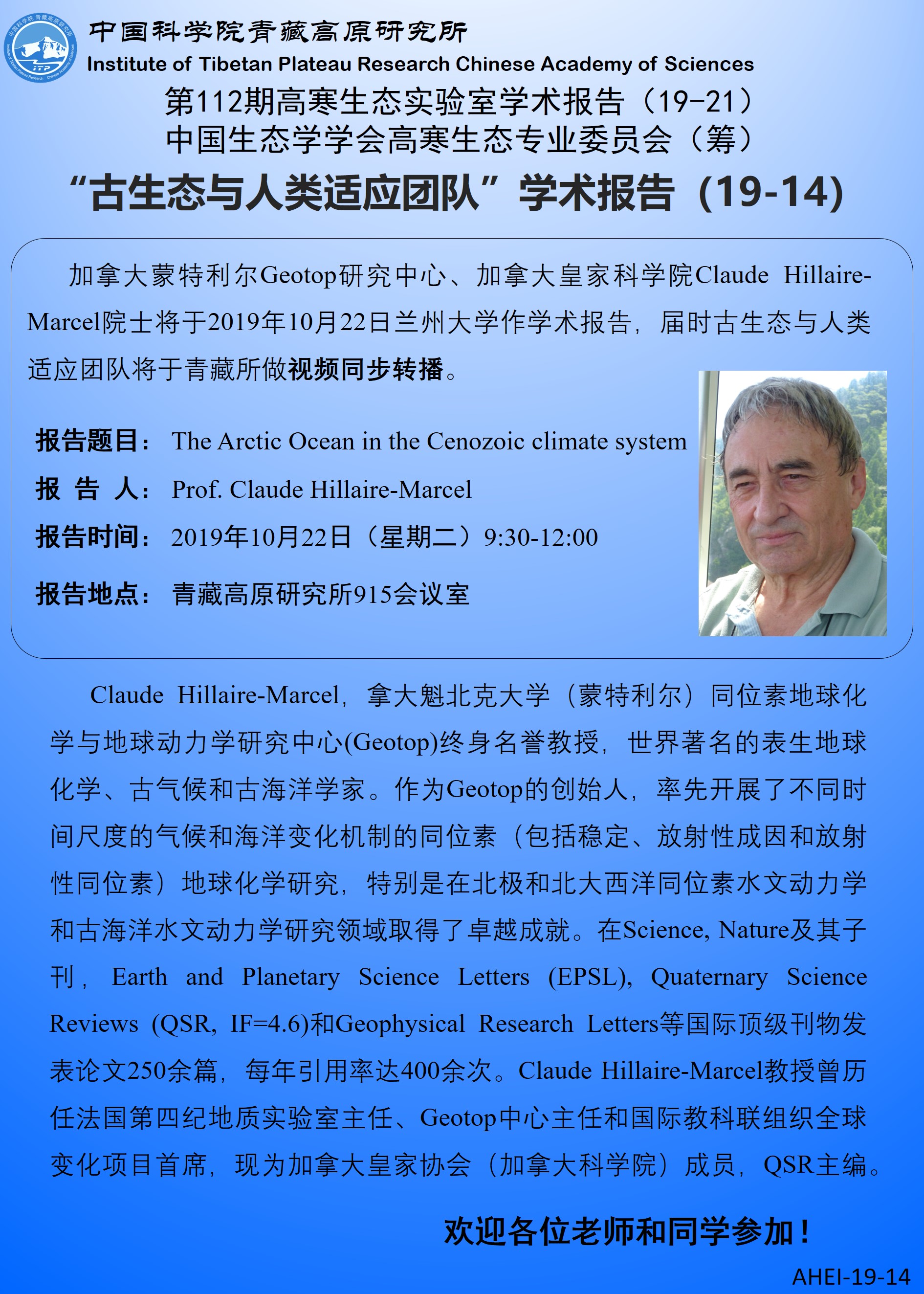 高寒生态重点实验室“古生态与人类适应团队”学术报告(19-14)[2019.10.22]